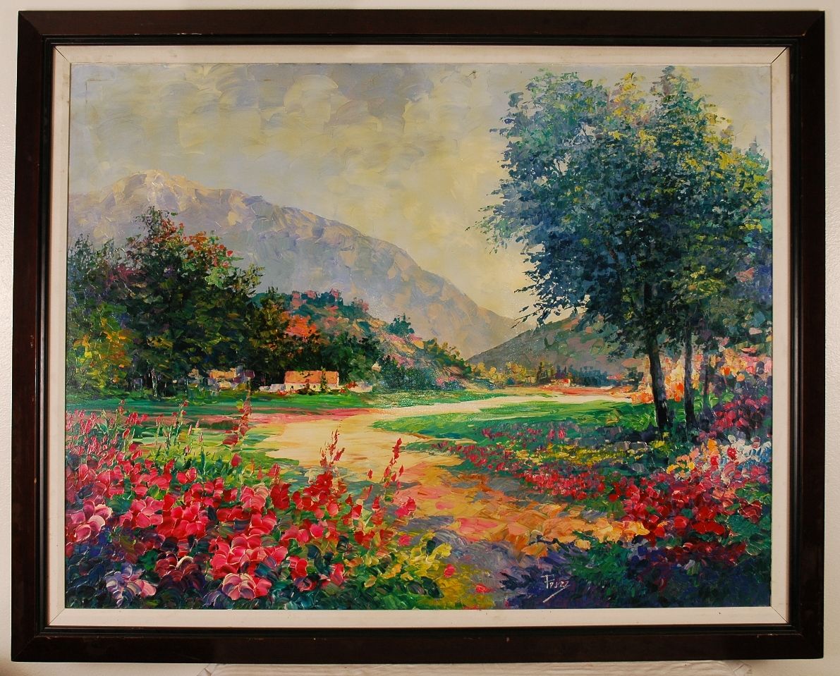 Alex Perez ("Provencal Landscape" Image size 50"x40" Original Oil on Canvas, hand signed by the artist. Minor Scratches on frame, otherwise in excellent condition
