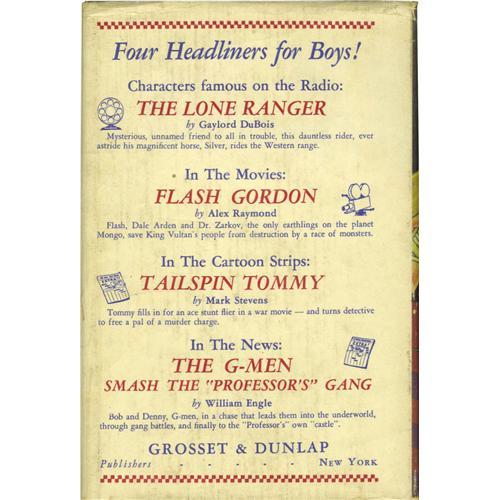 <B>Alex Raymond - "Flash Gordon In The Caverns of Mongo" (Grosset & Dunlap, 1936) Condition: Very Good.</B></I> First printing of the first novel based on the popular strip. No Raymond art, though he is listed as the writer. Front papers illustrated by Robb Beebe. Hardcover, 219 pages. Book and dust jacket are both Very Good. <I>From the John McLaughlin Collection</B></I><BR><BR><b>Shipping:</b> Books & Catalogs (<a target="_blank" href="http://www.heritageauctions.com/common/shipping.php">view shipping information</a>)