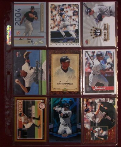 Alex Rodriguez, 18 Baseball Cards, (7844) 2 Sheets Of Alex Rodriguez Baseball Cards, 18 Total Cards, Including The following, 2000 Upper Deck, 2002 Upper Deck,1996 and 1997 Pinnacle, 2000 Upper Deck Hitters Club,2007 and 2008 Upper Deck, 1998 Donruss Hit List, 2006 and 2007 Fleer, 2010 Topps,