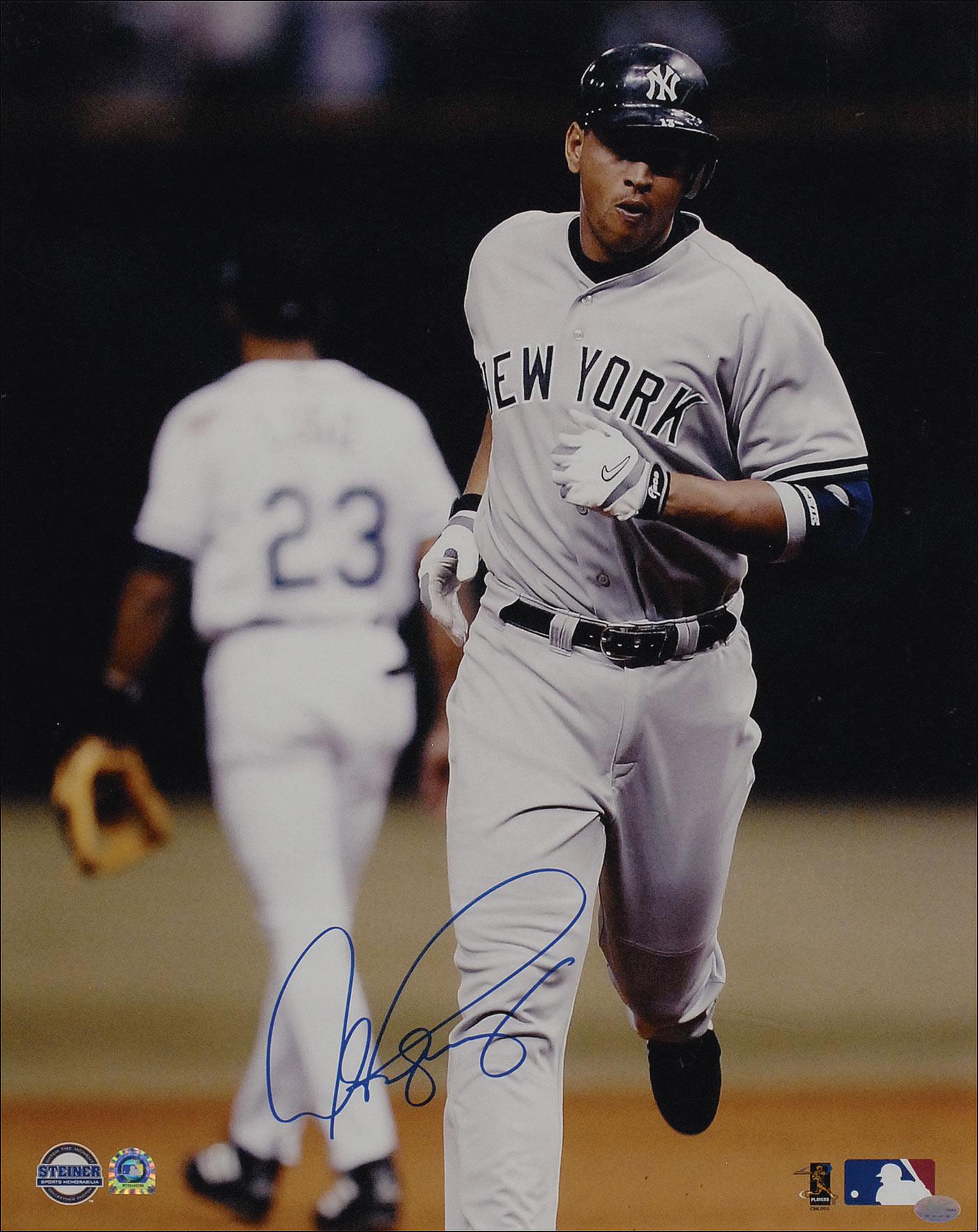 Color glossy 16 x 20 photo of Rodriguez rounding the bases, signed in blue felt tip. Rolled and in fine condition, with some scattered light surface marks and dings.
