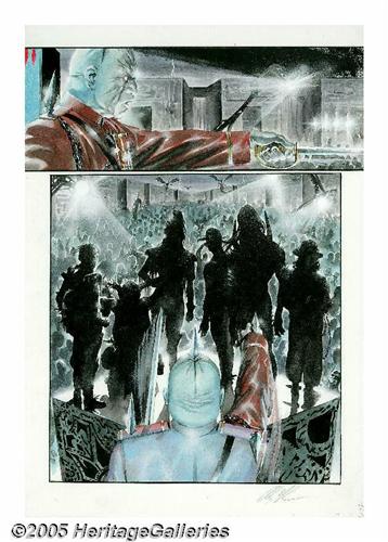 <B>Alex Ross - Clive Barker's Hellraiser #17, page 26 Original Art (Epic, 1992).</B></I> Heavyweight Alex Ross contributed to this landmark comicbook anthology which ran from 1989 to 1993, which was based on Clive Barker's horror classic. This early Ross page, painted in gouache on bristol board, is from the story, "Resurrection [The Harrowing, Part 1]". The art has an image area of 12" x 15," and is in Excellent condition. Signed by Alex Ross at the lower right.