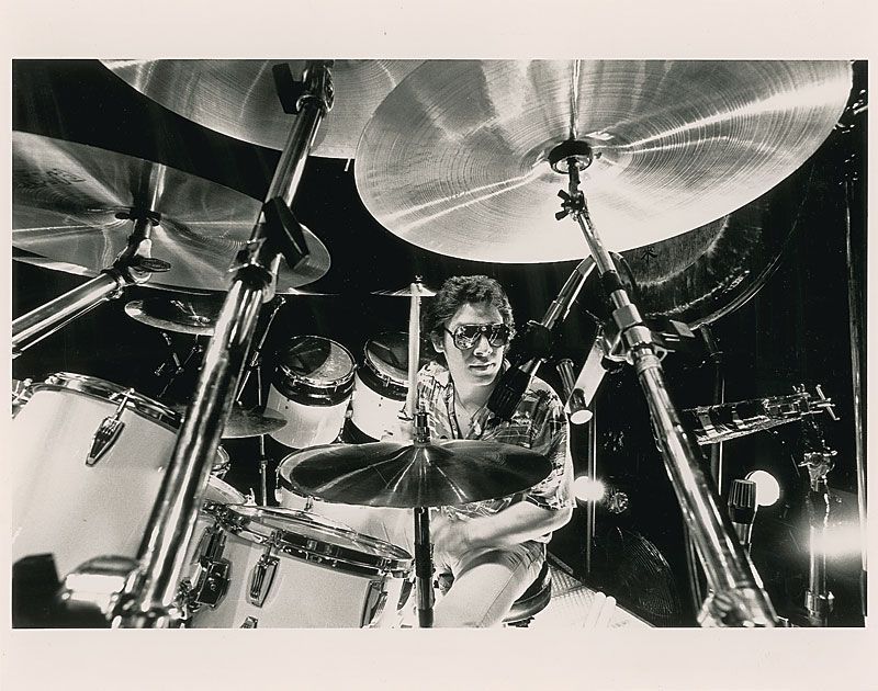 Original unsigned glossy 14 x 11 photo of Alex Van Halen and his drum kit, by Richard Creamer. In very fine condition. Provenance: Richard Creamer Estate. Creamer was a famous Rolling Stone photographer very active and well known in the 1970s Los Angeles Rock scene. The collection of Creamer photos offered in this auction were kept in his personal collection and several appeared in magazines.