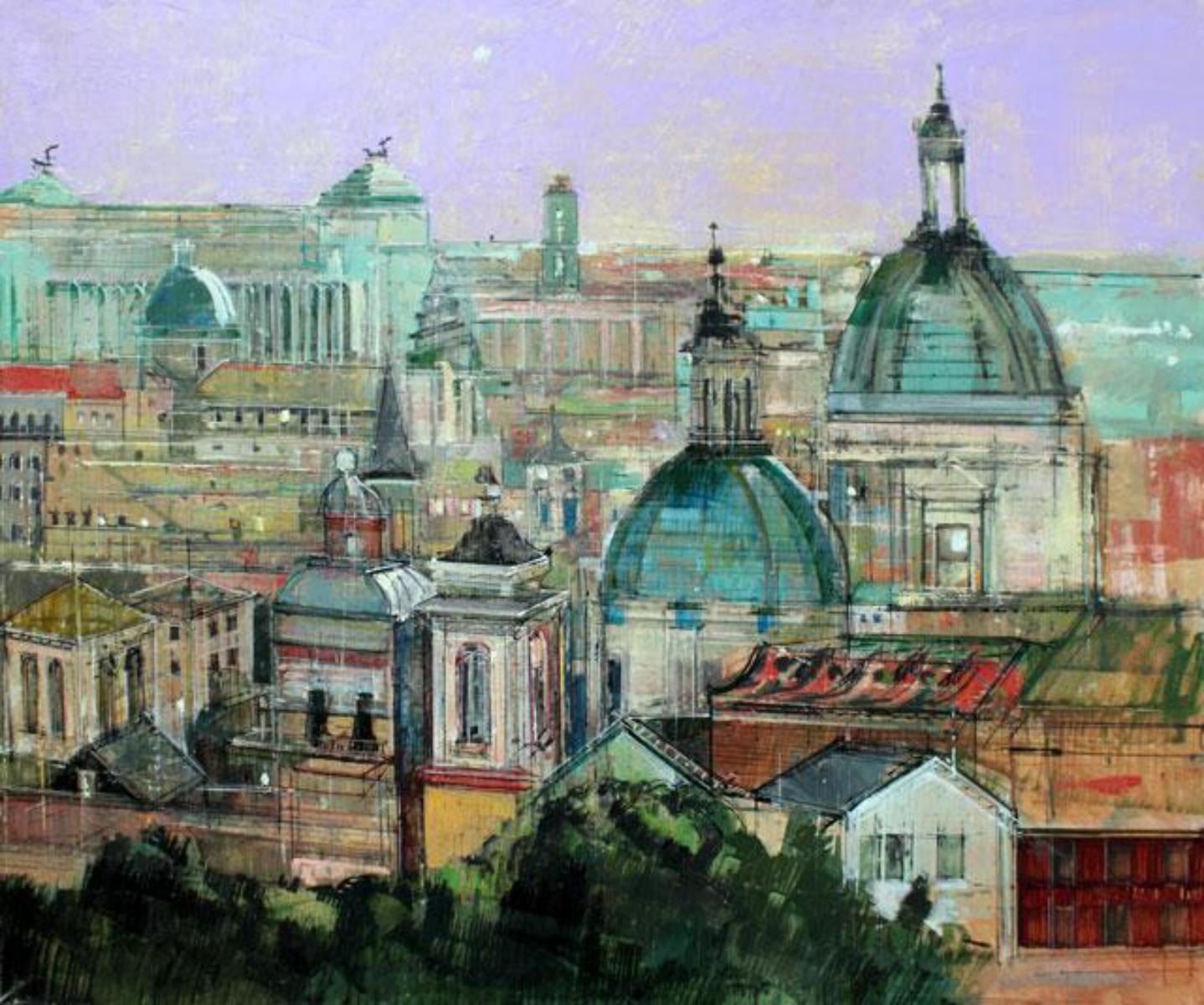 Artist: Alex Zwarenstein. Medium: Giclee on Canvas. Title: Rome Rooftops. Size: 20" x 24". Signed and numbered by the artist.