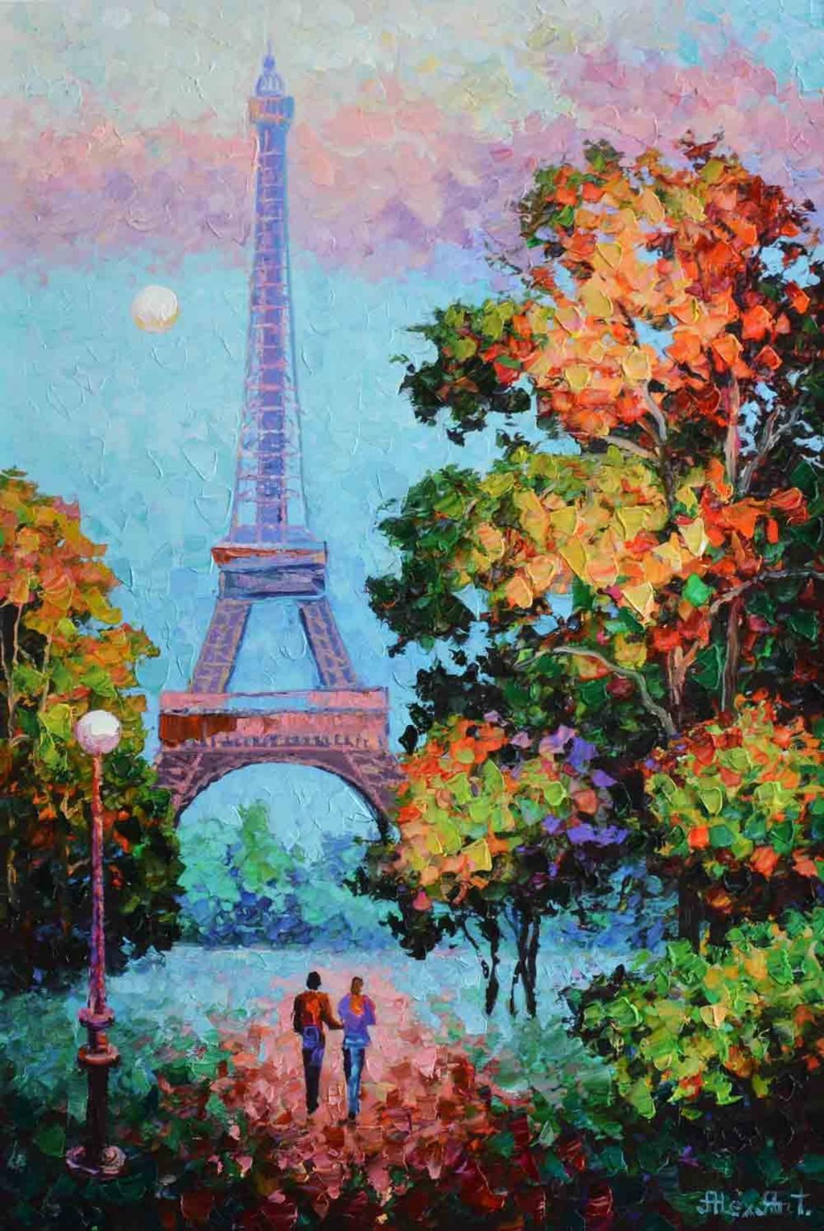 Artist: Alexander Antanenka - Title: A Walk to the Eiffel Tower - Medium: Heavily Hand Embellished Giclee on Canvas - Limited Edition: 75 - Signature: Hand-signed by the artist at the bottom of the image - Image Size: Approximately 24 inches x 16 inches - Framed: Unframed on Unstretched Canvas - Details: This work comes with a Certificate of Authenticity - Biography: - Biography: Alexander Antanenka was born in the Soviet Union in the city of Brest on February 16, 1951. - His paintings are held in many private collections throughout the world including the countries of Belgium, Czech Republic, Germany, Holland, Israel, Italy, Japan, Poland, Russia and USA.