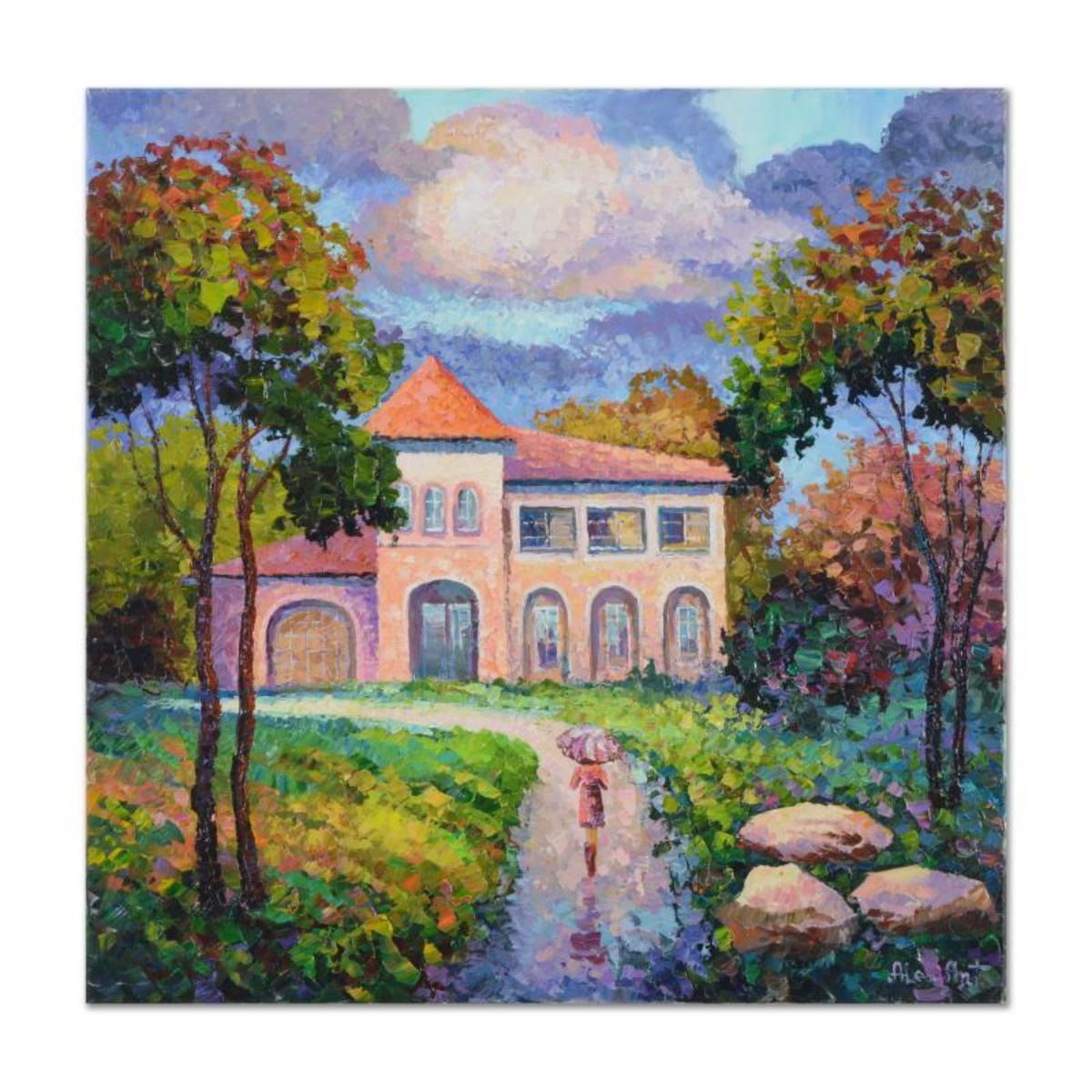 "Rainy Visit" is an original oil painting on stretched canvas by Alexander Antanenka, hand signed by the artist. Includes Certificate of Authenticity. Measures approx. 30" x 30" (image). Reference #: 231459