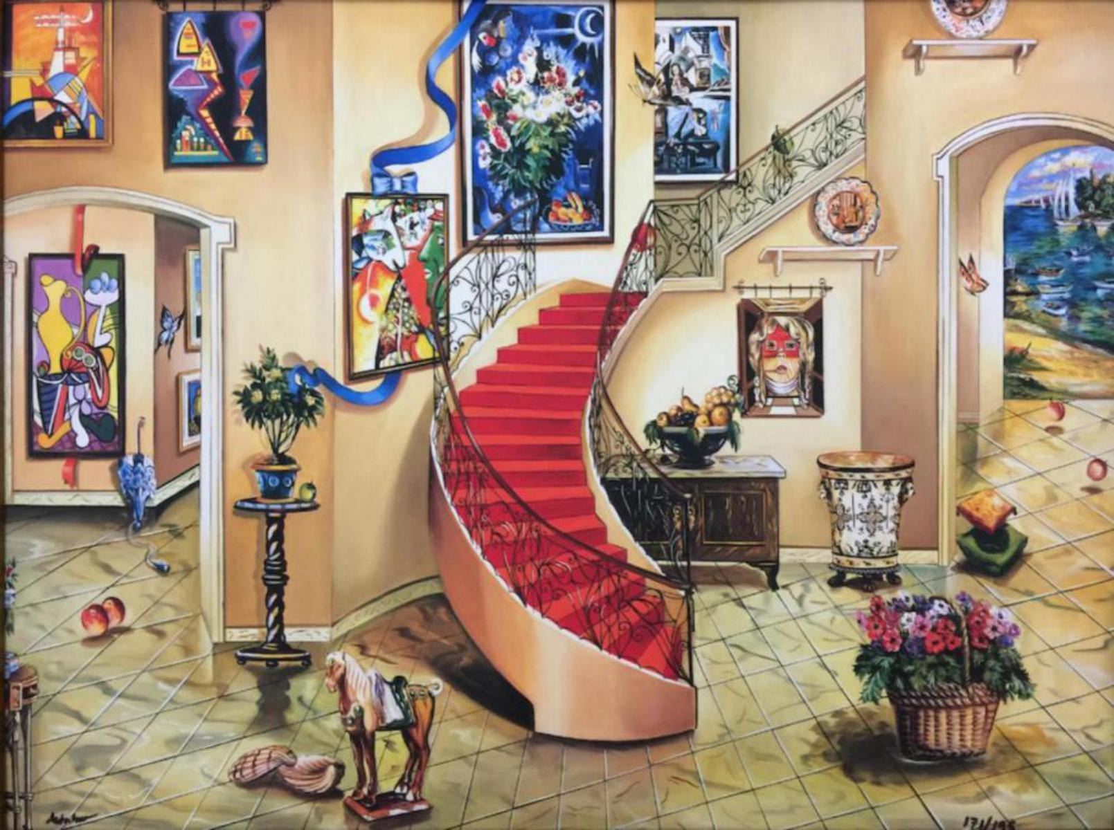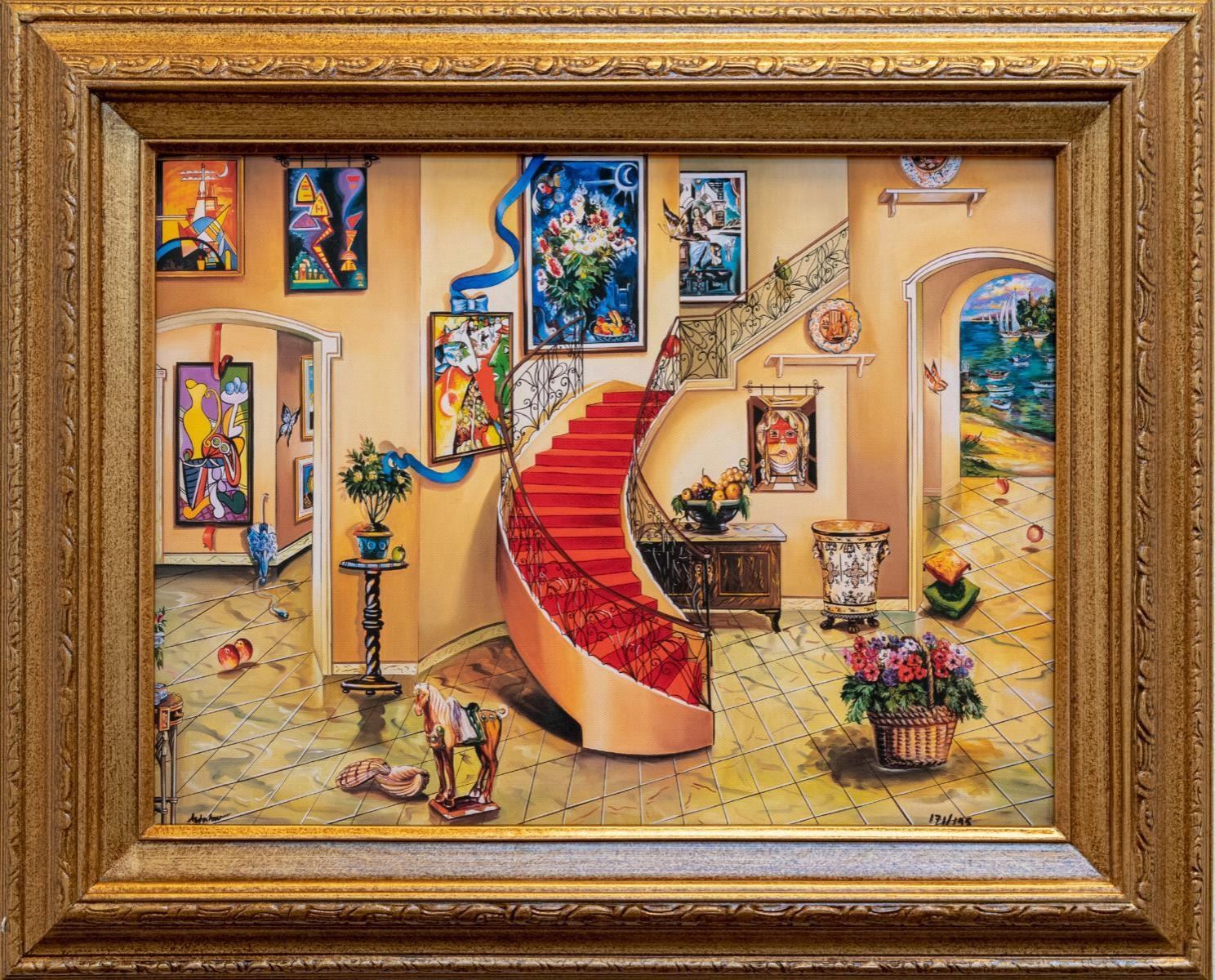 Artist: Alexander Astahov. Medium: Original Giclee on Canvas. Title: Chagall View. Size (Unframed): 12" x 16". Size (Framed): 17.5" x 21.5". Limited Edition: Edition of 195. Certificate of Authenticity: From the publisher. Additional: Stretched and ready to hang.