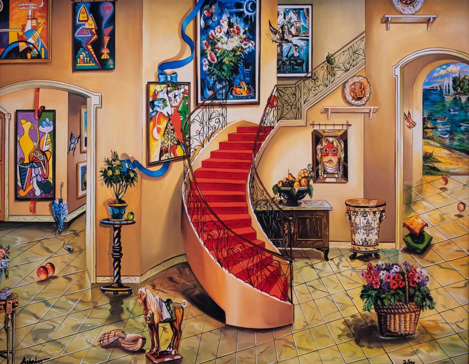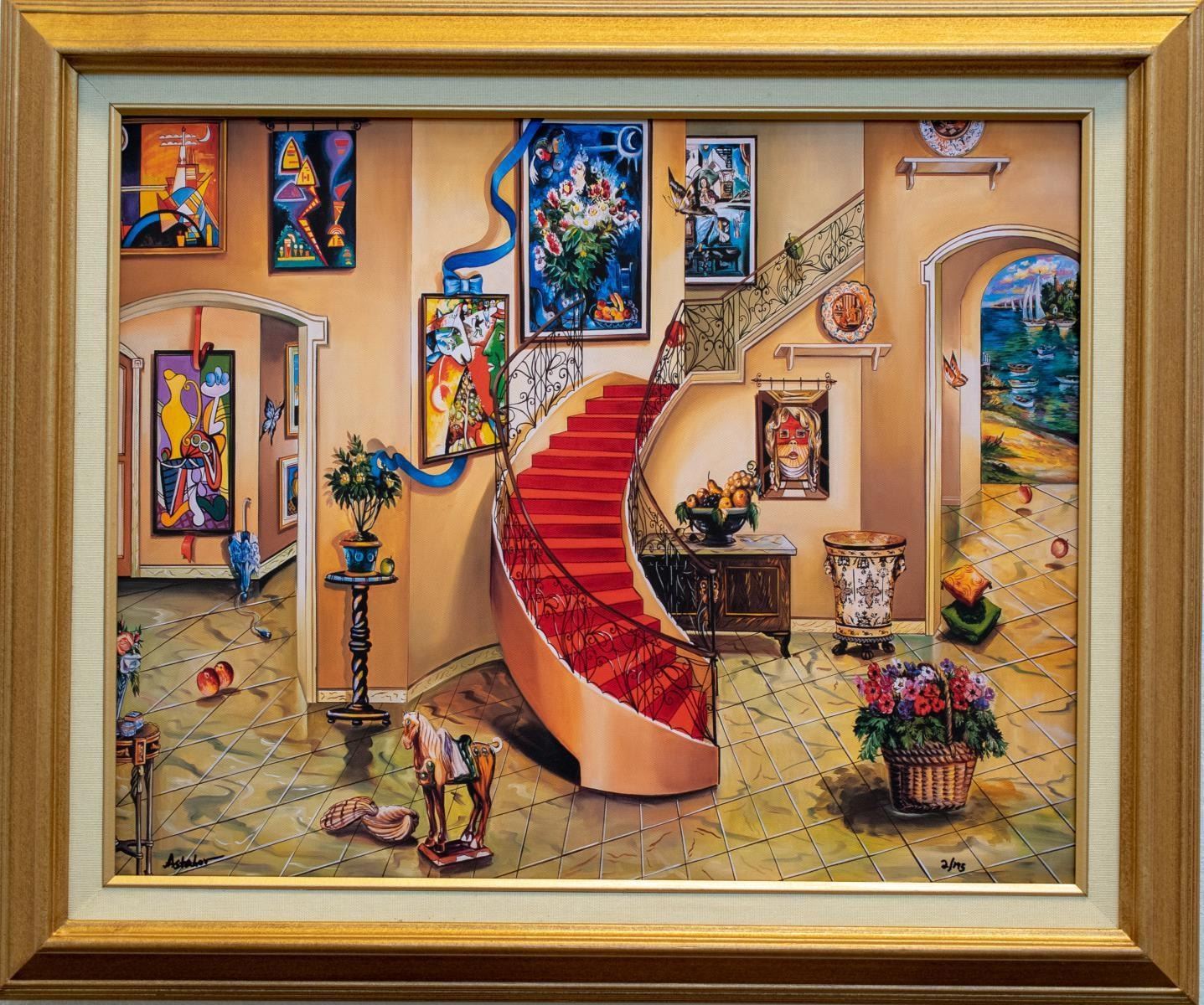 Artist: Alexander Astahov. Medium: Original Giclee on Canvas. Title: Chagall View. Size (Unframed): 16" x 20". Size (Framed): 21" x 25". Limited Edition: Edition of 195. Certificate of Authenticity: From the publisher. Additional: Custom Framed and ready to hang.