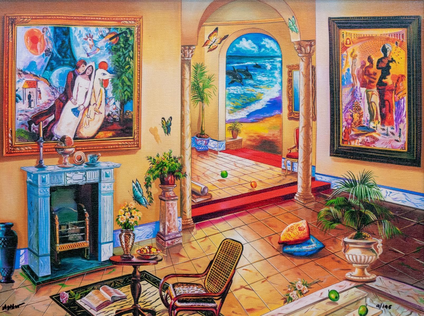 Artist: Alexander Astahov. Medium: Original Giclee on Canvas. Title: Interior with Chagall. Size (Unframed): 12" x 16". Size (Framed): 17.5" x 21.5". Limited Edition: Edition of 195. Certificate of Authenticity: From the publisher. Additional: Custom Framed and ready to hang.