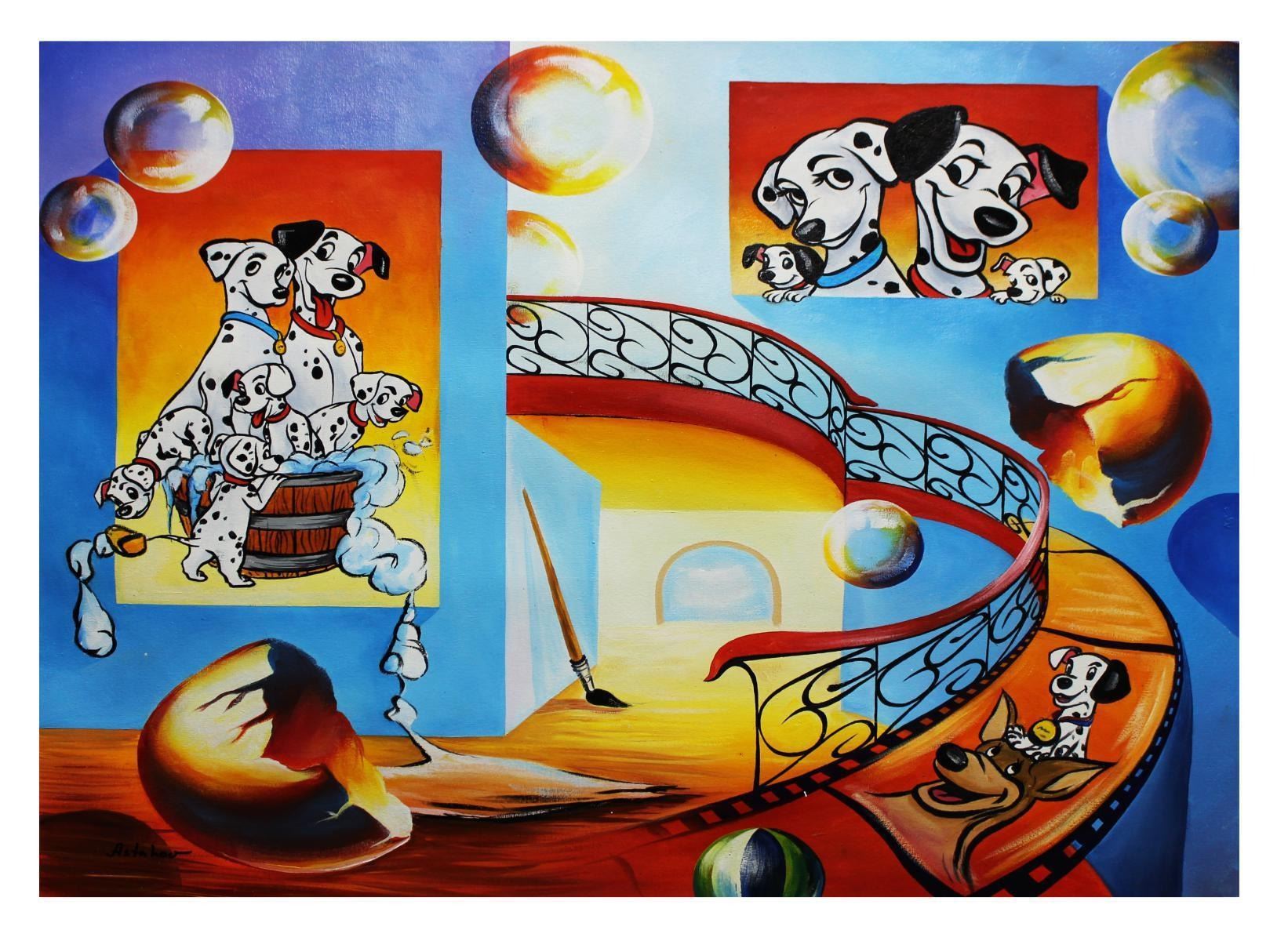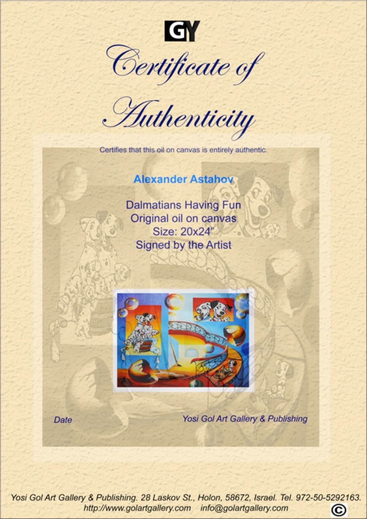 Artist: Alexander Astahov. Medium: Original Oil on Canvas. Title: Dalmatians Having Fun. Size (Unframed): 20" x 24". Certificate of Authenticity: From the publisher. Reference# 10676.