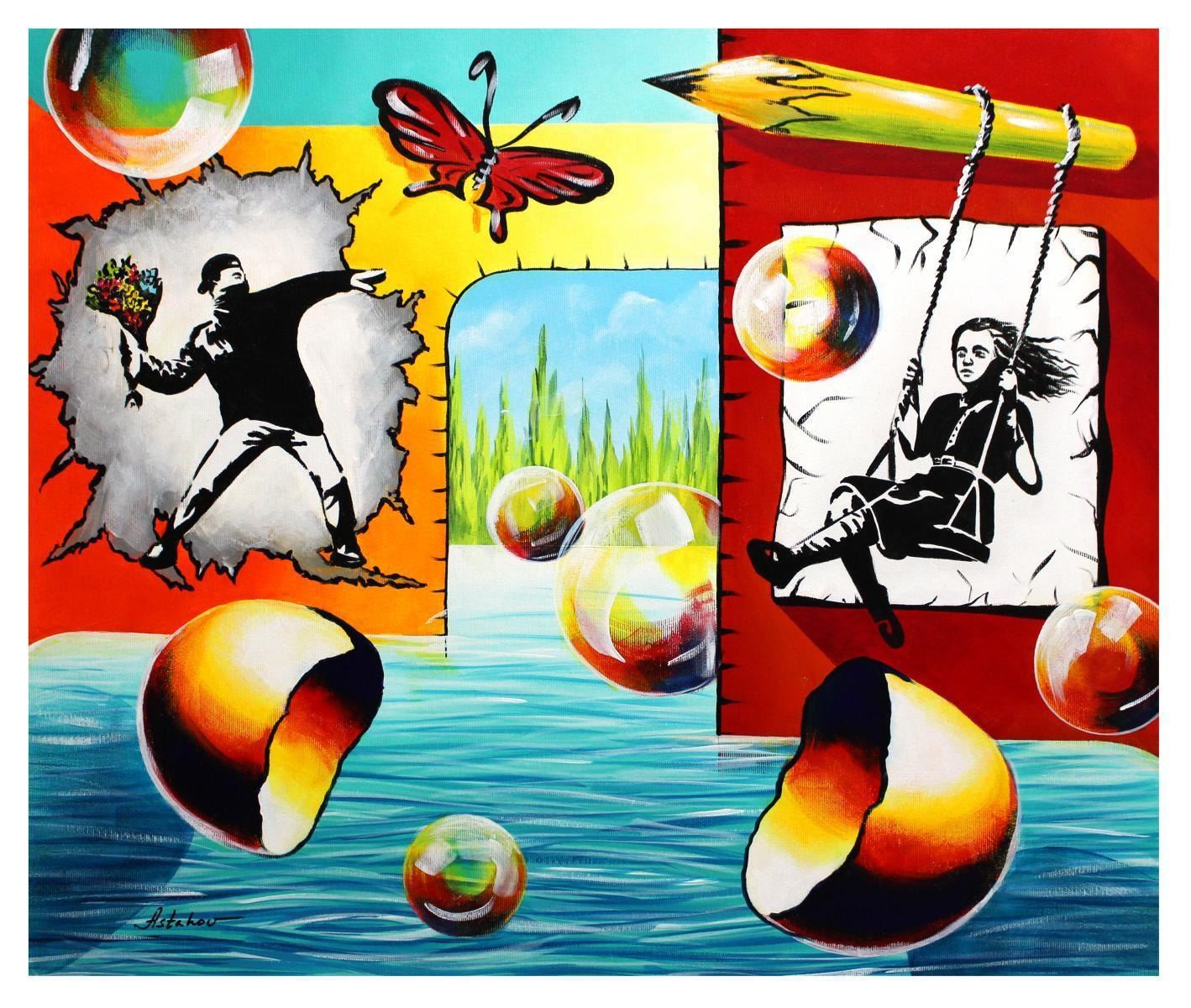 Artist: Alexander Astahov. Medium: Original Oil on Canvas. Title: Homage to Banksy. Size (Unframed): 20" x 24". Certificate of Authenticity: From the publisher. Reference# 13375.