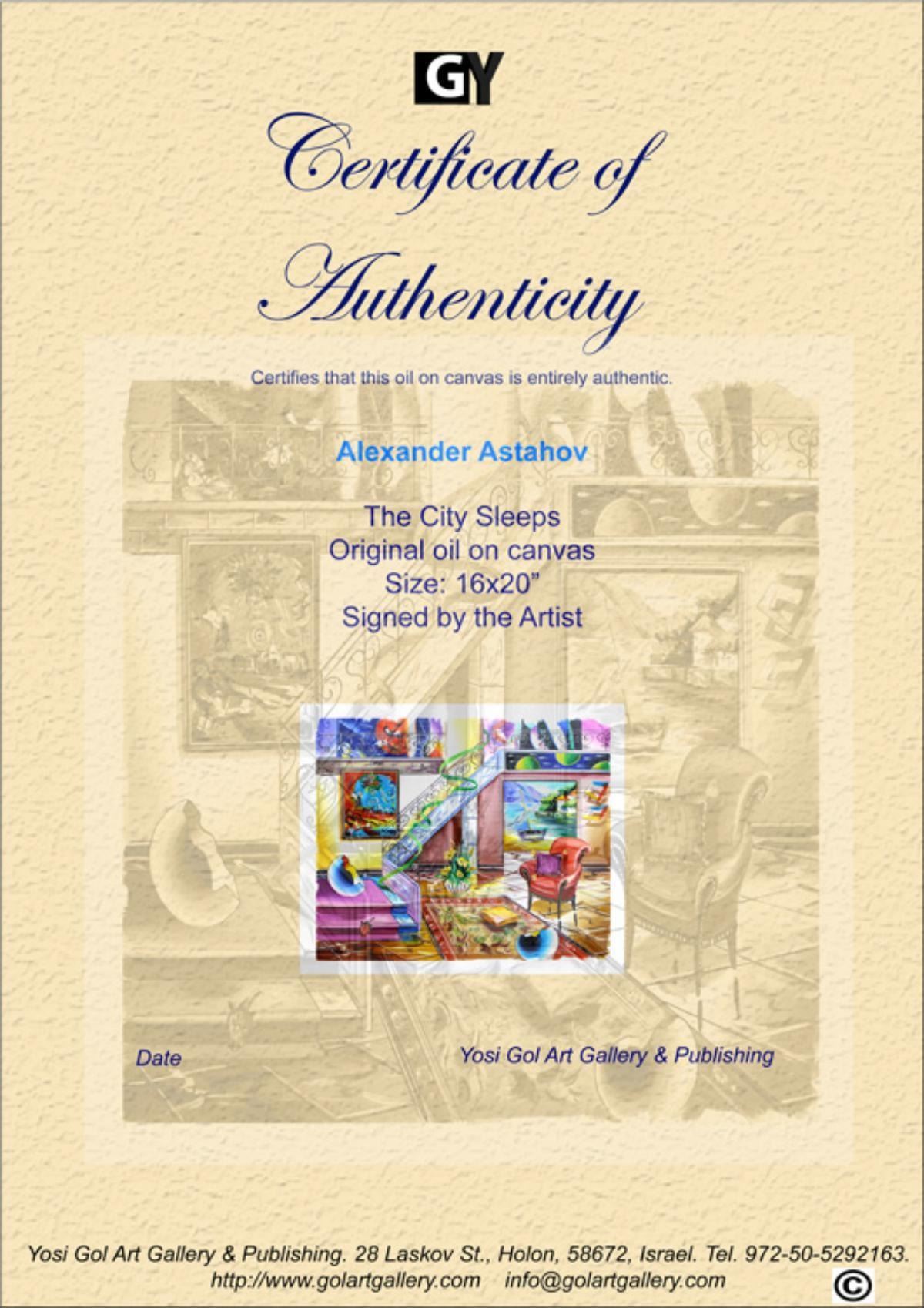 Artist: Alexander Astahov. Medium: Original Oil on Canvas. Title: The City Sleeps. Size (Unframed): 16" x 20". Size (Framed): 22" x 25". Certificate of Authenticity: From the publisher. Reference# 10042.