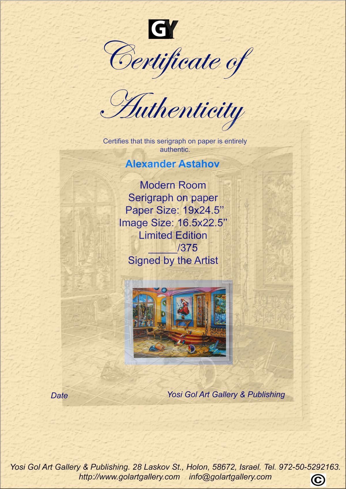 Artist: Alexander Astahov. Medium: Original Serigraph on Paper. Title: MODERN ROOM. Size (Unframed): 19" x 24.5". Limited Edition: Edition of 375. Certificate of Authenticity: From the publisher.