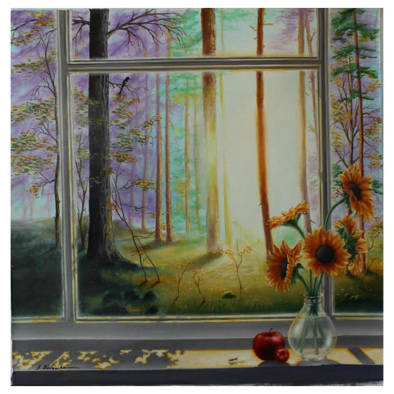 "Heaven's View" is an original Oil on Canvas by Alexander Borewko. The piece is hand signed and comes with a Certificate of Authenticity. Measures approximately 23.5" x 23.5".