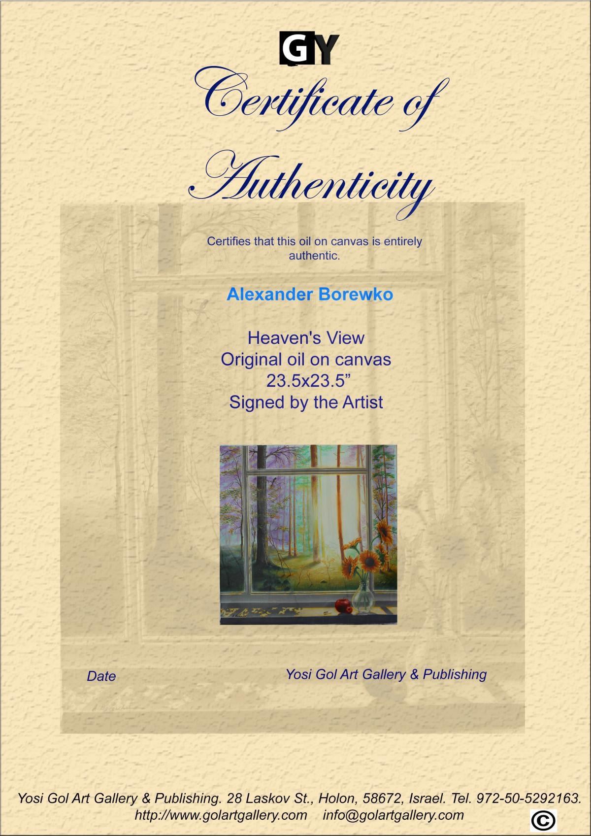 Artist: Alexander Borewko. Medium: Original Oil on Canvas. Title: Heaven's View. Size (Unframed): 23.5" x 23.5". Certificate of Authenticity: From the publisher. Reference# 10193.