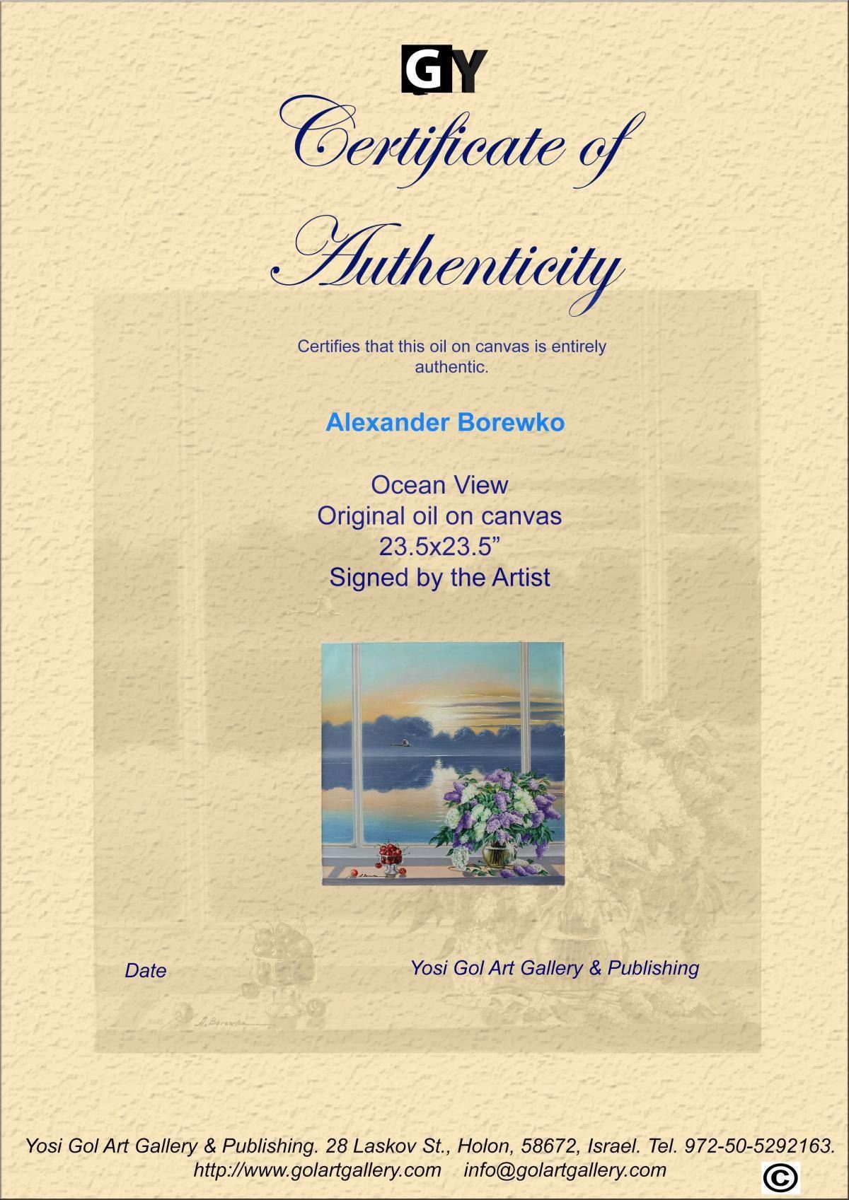 Artist: Alexander Borewko. Medium: Original Oil on Canvas. Title: Ocean View. Size (Unframed): 23.5" x 23.5". Certificate of Authenticity: From the publisher. Reference# 10195.