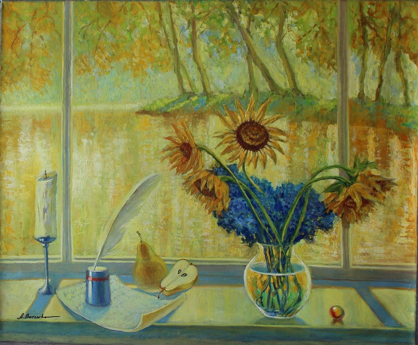Artist: Alexander Borewko. Medium: Original Oil on Canvas. Title: Writing to My Mother. Size (Unframed): 19.5" x 23.5". Certificate of Authenticity: From the publisher. Reference# 10189.
