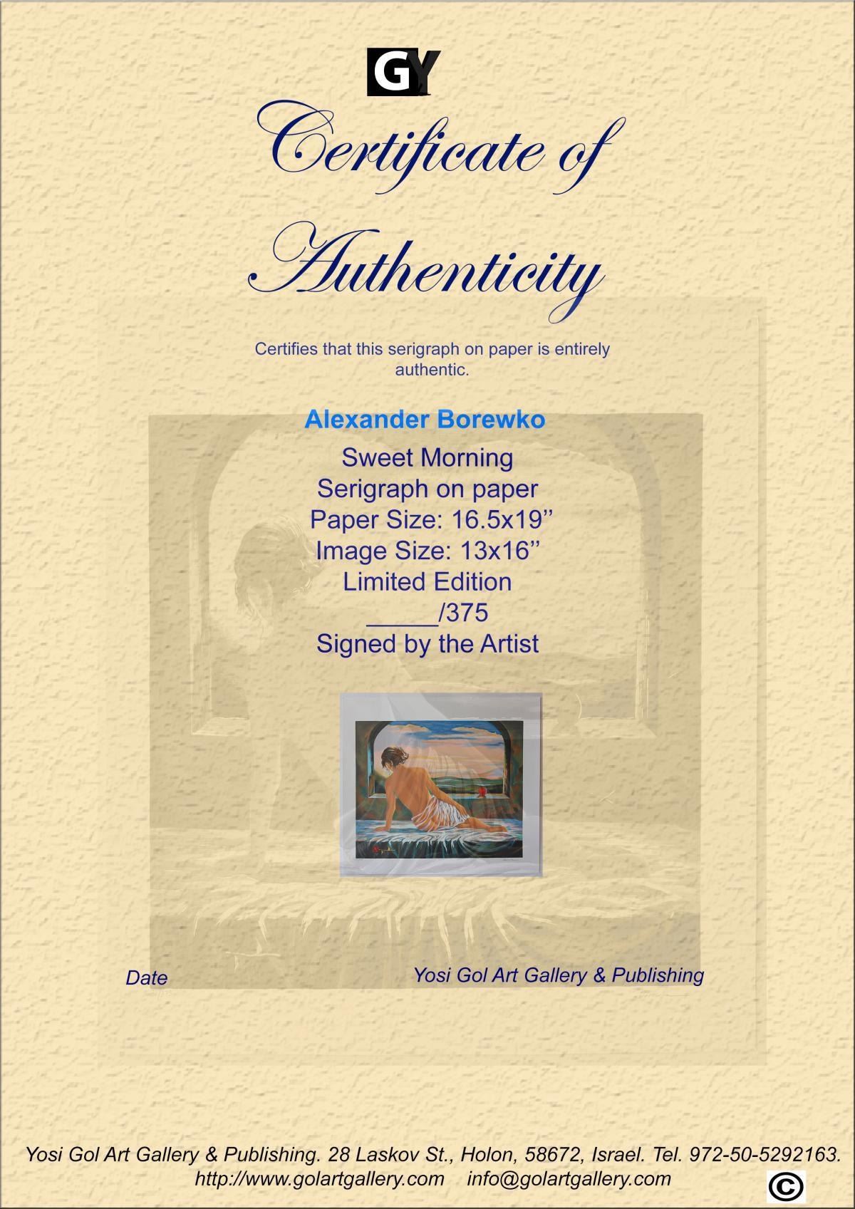 Artist: Alexander Borewko. Medium: Original Serigraph on Paper. Title: Sweet Morning. Size (Unframed): 16.5" x 19". Limited Edition: Edition of 375. Certificate of Authenticity: From the publisher.