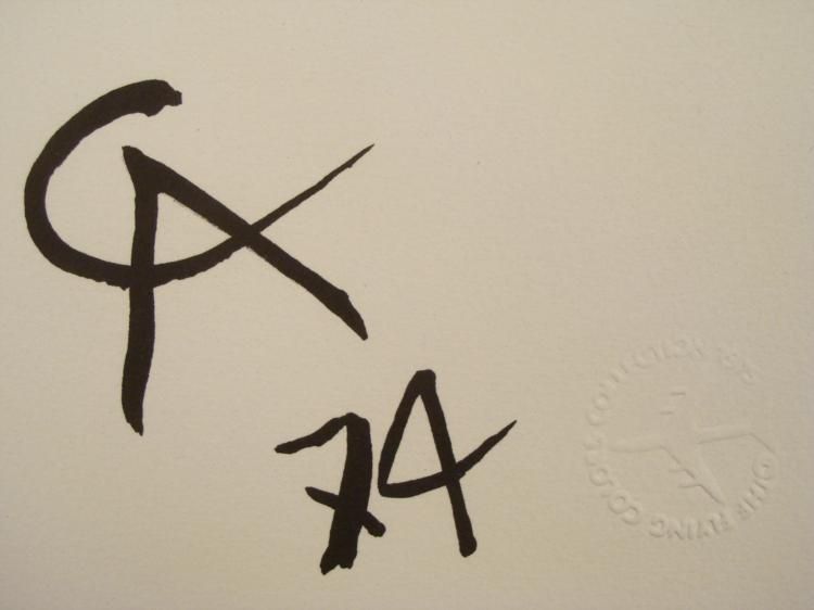 This seven legged creature is cow or horse, or perhaps something else from Calder's fancifull imagination. Artist: Alexander Calder Title: Beastie Image Size: 20 x 26 inches. Paper Size: 20 x 26 inches. Notes: Lithograph