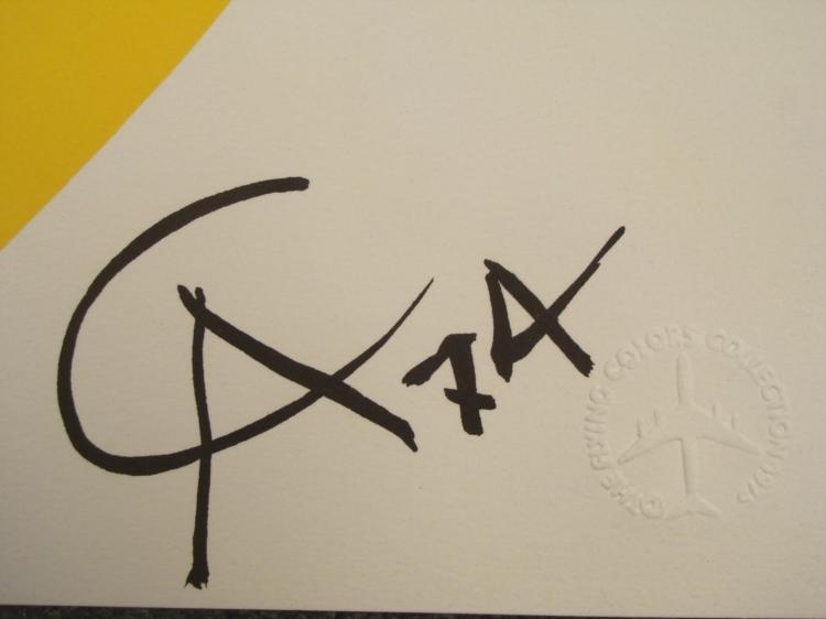 This vibrant print is from Alexander Calder's historic "Flying Colors Collection" produced for Braniff Airlines in 1974. Artist: Alexander Calder Title: Convection Image Size: 20 x 26 inches. Paper Size: 20 x 26 inches. Notes: Lithograph