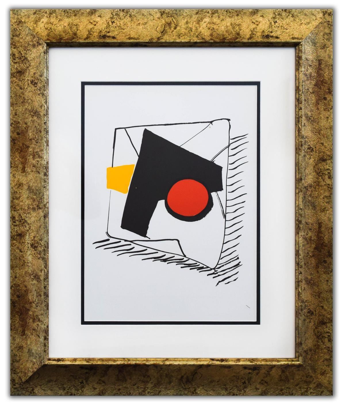 Artist: Alexander Calder. Medium: Lithograph. Title: DLM221 - Composition géométrique. Size (Unframed): 15" x 11". Size (Framed): 24" x 20". Certificate of Authenticity: Is included. Additional: Year : 1976. Reference# 13185.