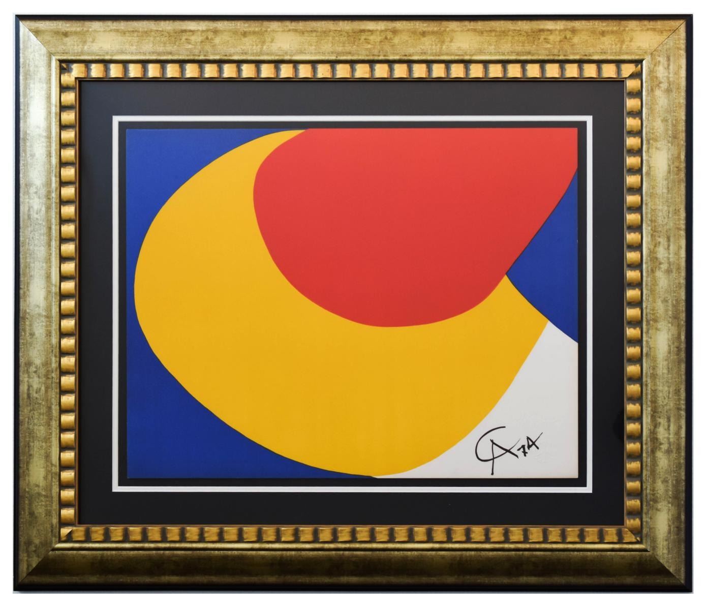 Artist: Alexander Calder. Medium: Lithograph. Title: Flying colors - Convection. Size (Unframed): 20" x 26". Size (Framed): 39" x 33". Certificate of Authenticity: Is included. Additional: Year : 1974. Reference# 12230.
