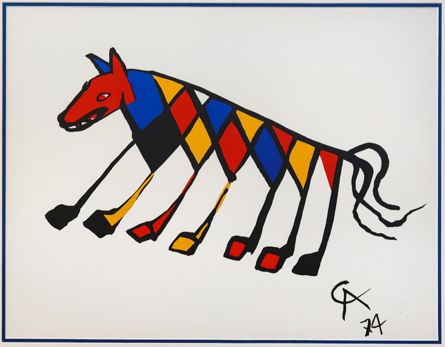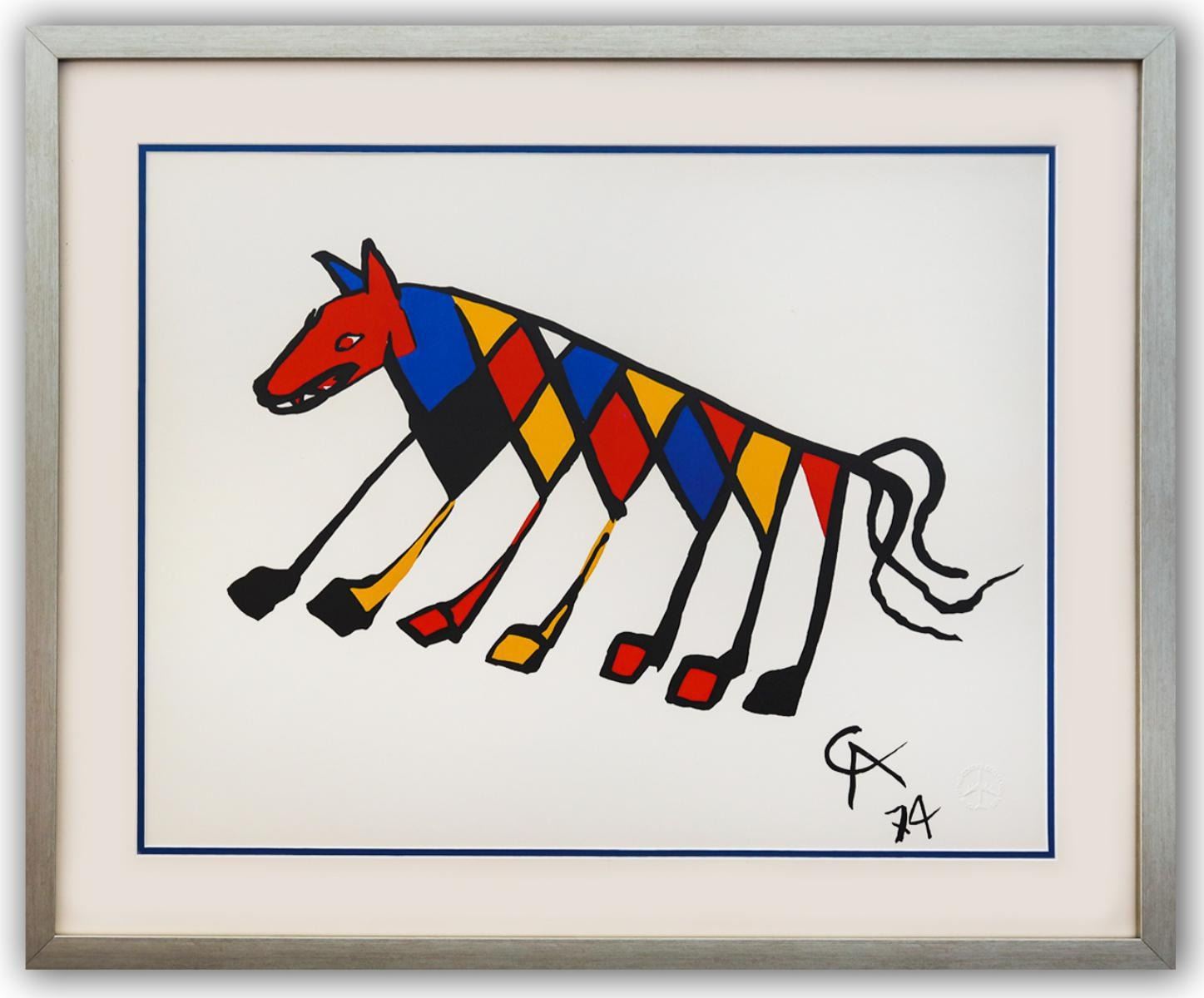 Artist: Alexander Calder. Medium: Lithograph on Arches Paper. Title: Flying colors - Beastie. Size (Unframed): 20" x 26". Measures approx. (Framed): 27" x 33". Certificate of Authenticity: Is included. Additional: Custom framed. Reference# 18408.