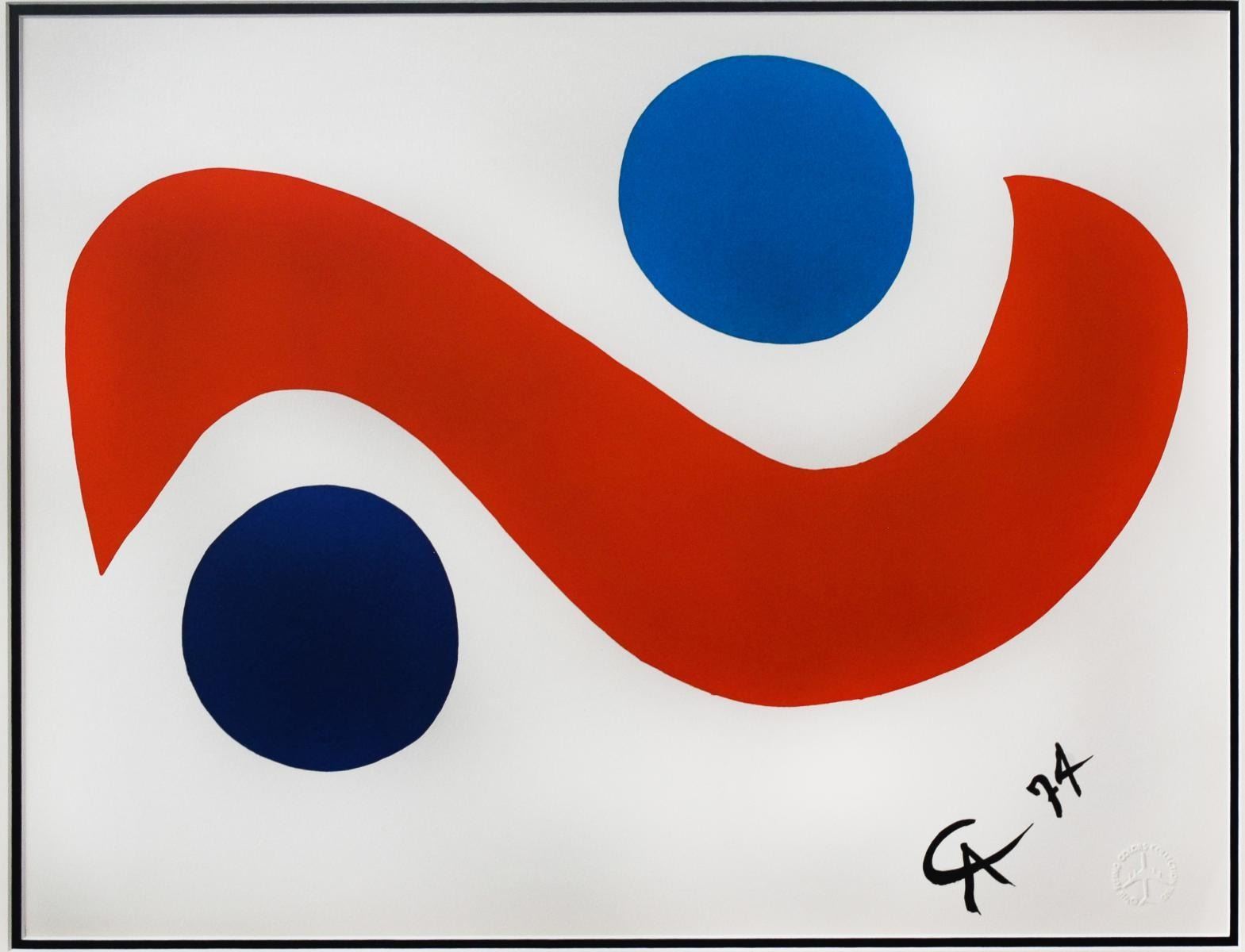 Artist: Alexander Calder. Medium: Lithograph on Arches Paper. Title: Flying colors - Skybird. Size (Unframed): 20" x 26". Size (Framed): 27" x 33". Certificate of Authenticity: Is included. Additional: Custom framed. Reference# 16216.
