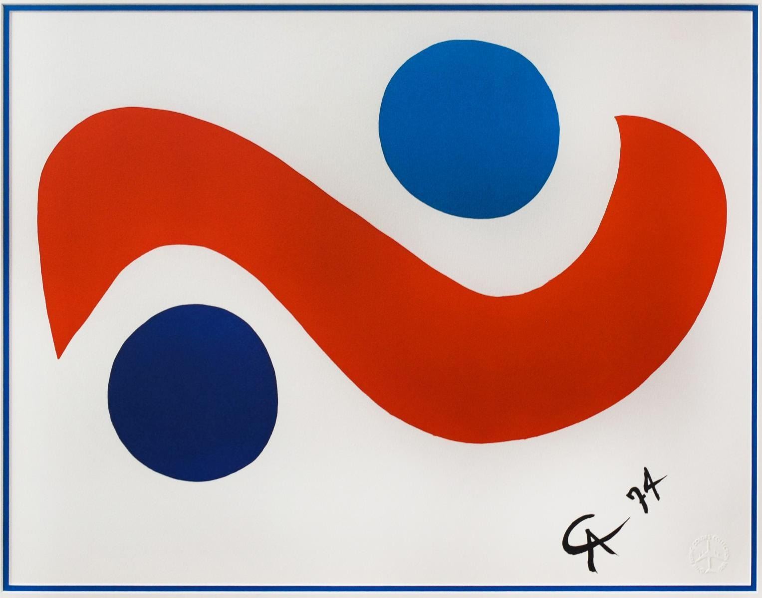 Artist: Alexander Calder. Medium: Lithograph on Arches Paper. Title: Flying colors - Skybird. Size (Unframed): 20" x 26". Size (Framed): 27" x 33". Certificate of Authenticity: Is included. Additional: Custom framed. Reference# 16214.