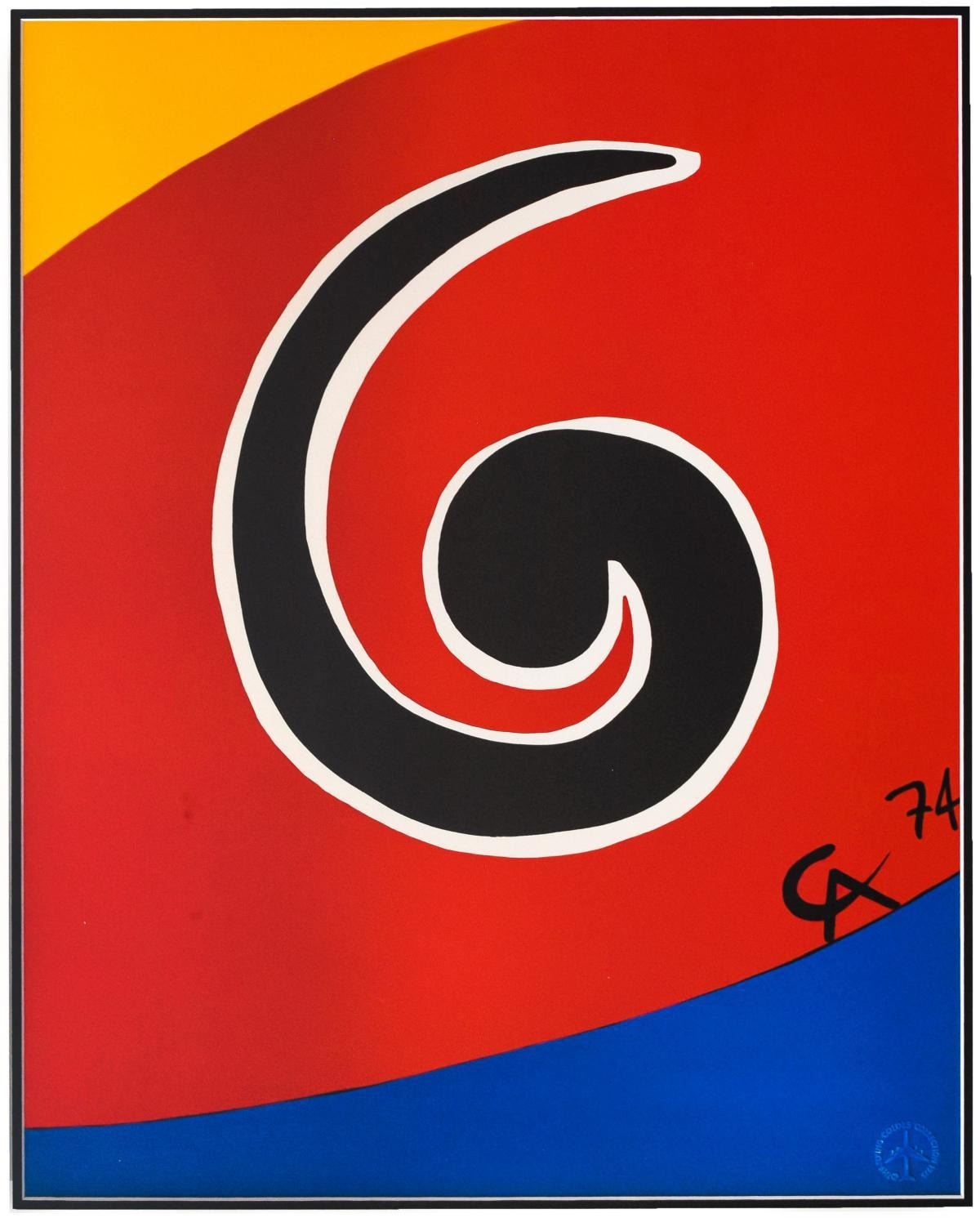 Artist: Alexander Calder. Medium: Lithograph on Arches Paper. Title: Flying colors - Skywirl. Size (Unframed): 20" x 26". Measures approx. (Framed): 27" x 33". Certificate of Authenticity: Is included. Additional: Custom framed. Reference# 16542.