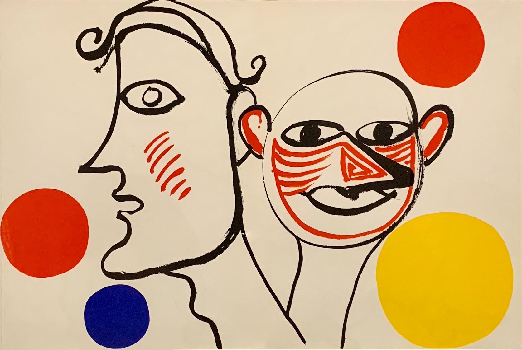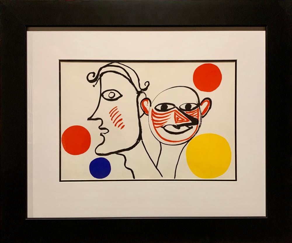 Alexander Calder (1898 - 1976) Original color lithograph on paper, "Le peintre et son double" (The Painter and His Double). Limited edition, publisher Maeght, Paris, 1976. Sheet: 15 x 22 in. Frame: 30 x 36 inches. Lithograph in excellent condition, the frame is new.