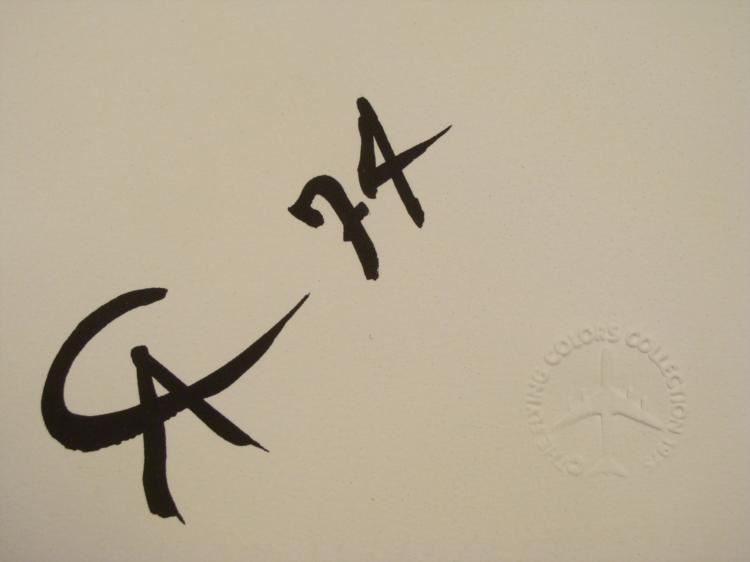 This light and stylish print is from Alexander Calder's historic "Flying Colors Collection" produced for Braniff Airlines in 1974.Artist: Alexander Calder Title: Skybird Image Size: 20 x 26 inches. Paper Size: 20 x 26 inches. Notes: Lithograph
