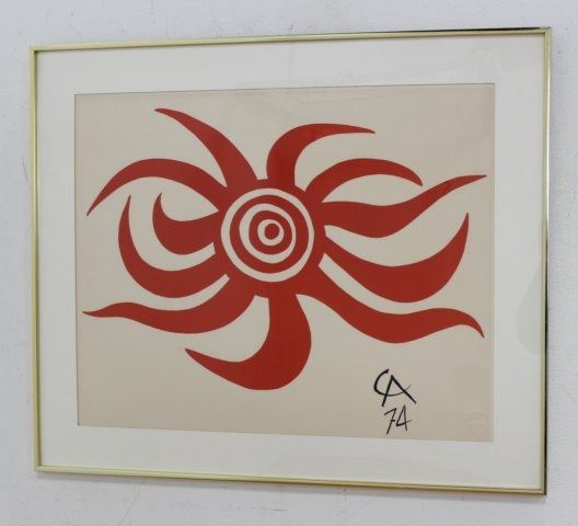 From The Flying Colors Collection - 1974. Signed and dated in plate. Alexander Calder (1898-1976). Approx. 19" H x 24" W sight, 25" H x 30" W framed. (6013)