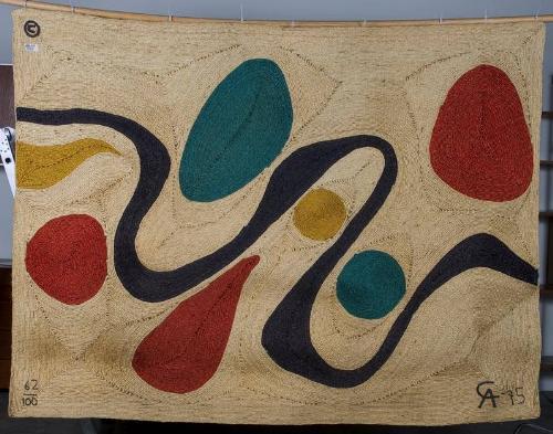 <b>Description: </b>Turquoise, 1975 ; Handwoven maguey jute fiber Bon Art