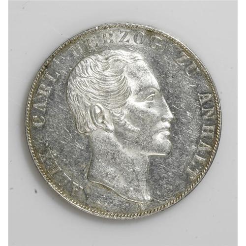 <B>Anhalt-Bernburg. Alexander Carl 2 Taler 1845A,</B></I> KM83, Dav-503, lustrous AU with moderately abraded surfaces. Very scarce.<BR><I>From the Blue Ridge Collection</B></I><BR><BR><b>Shipping:</b> Coin/Currency (<a target="_blank" href="http://www.heritageauctions.com/common/shipping.php">view shipping information</a>)