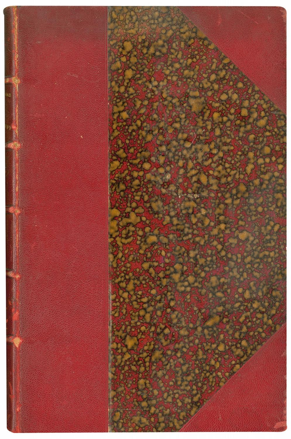 French writer (1824–1895), the illegitimate son of famed novelist Alexandre Dumas. The younger Dumas novel La Dame aux Camelias became the basis of Verdi’s opera ‘La Traviata.’ Signed book: Les Danicheff. Limited edition of 25 editions (this being no. 24). Paris: Calmann Levy, 1879. Contemporary three-quarter morocco and marbled paper-covered boards, 6.75 x 10, 133 pages. Signed and inscribed on the half-title page by Dumas, using the pseudonym “Pierre Nevsky.” In very good condition, rebound as noted, with mild toning to signed page, pencil notations to opening pages, and some mild wear to spine.