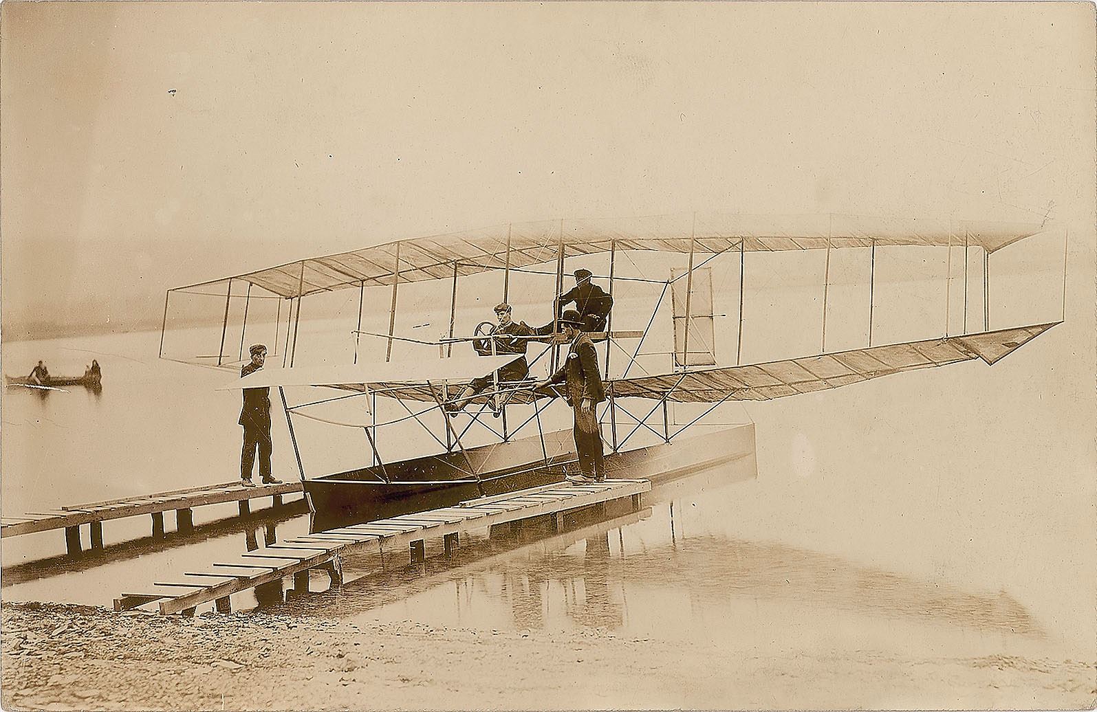 18. Drome No. 3A: Curtiss’s June Bug (now called ‘The Loon’) on pontoons at Lake Keuka