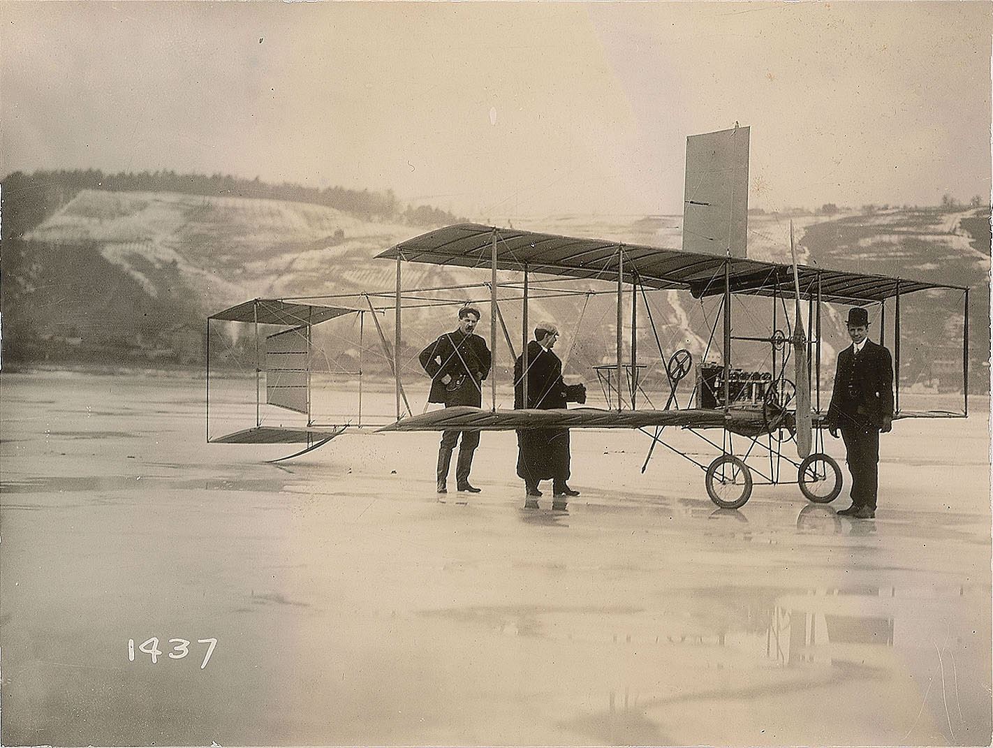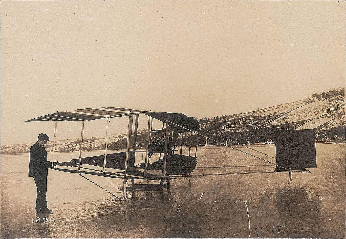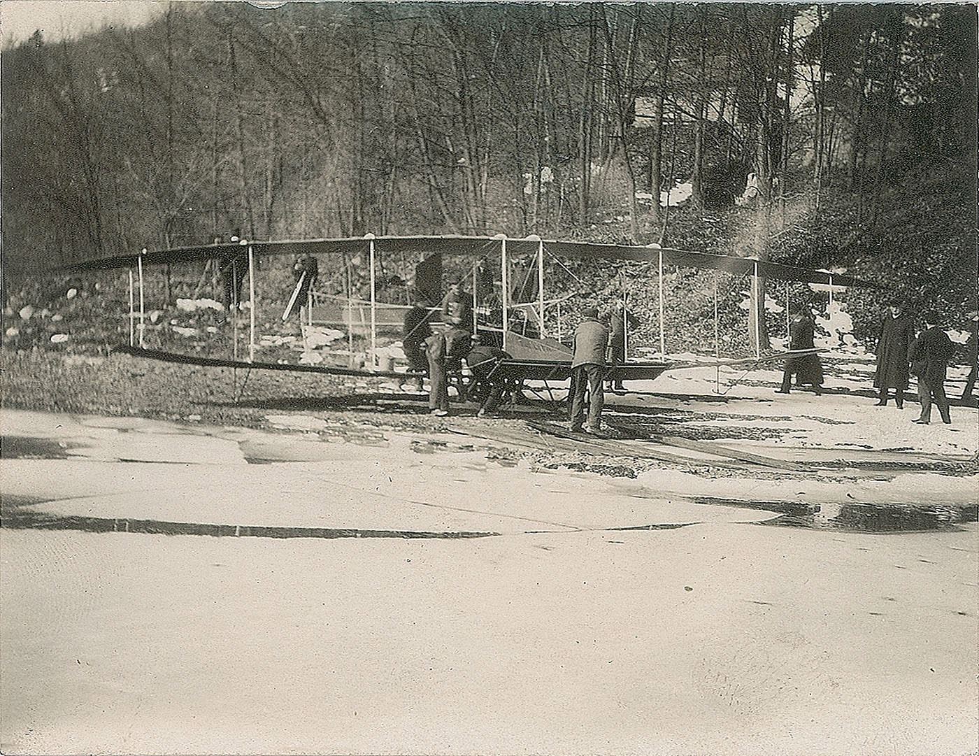 25. Drome No. 4: McCurdy’s Silver Dart on ice at Baddeck, Nova Scotia, February 1909