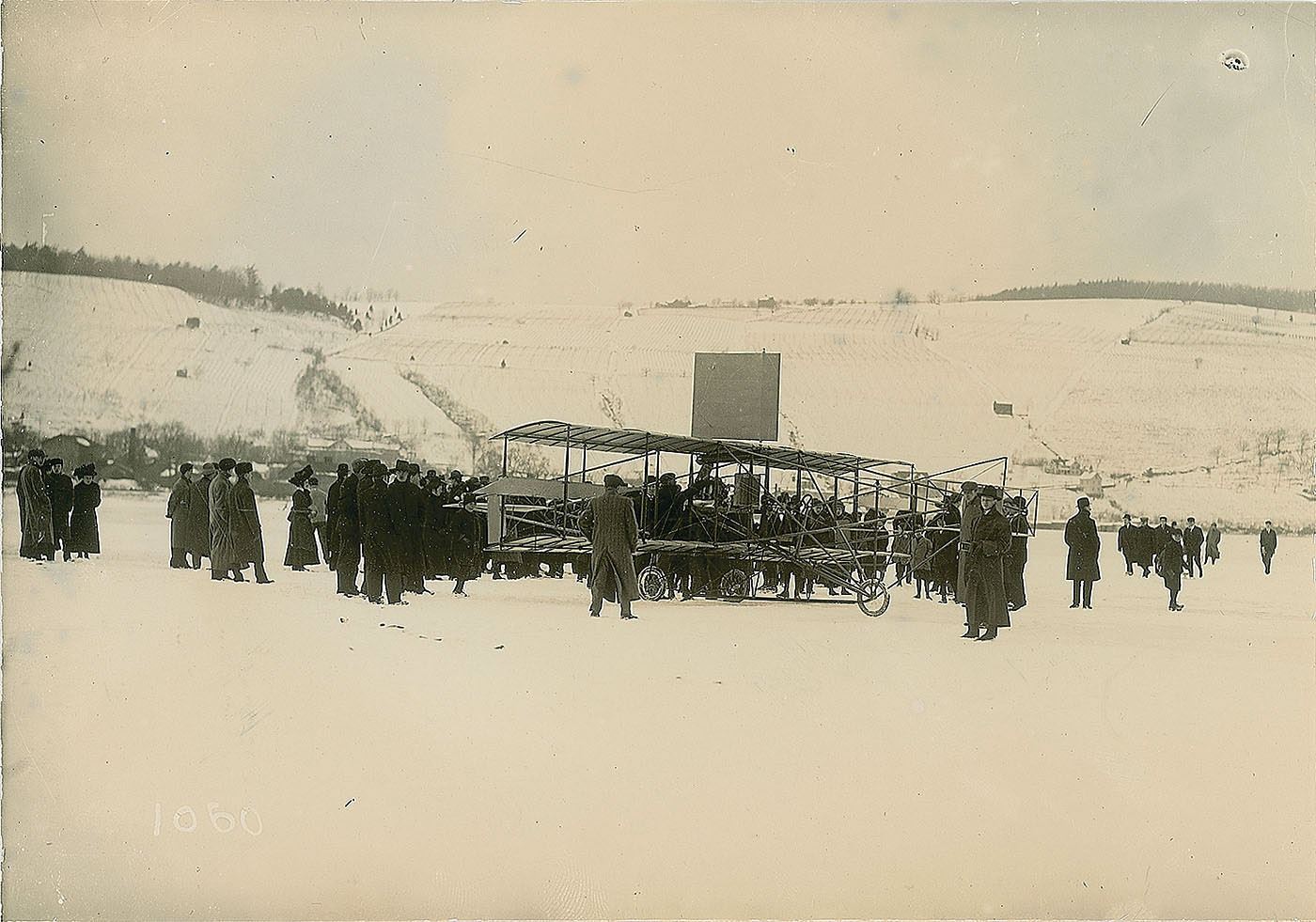 4. Drome No. 1: Selfridge’s Red Wing on the ice on Lake Keuka on March 9, 1908