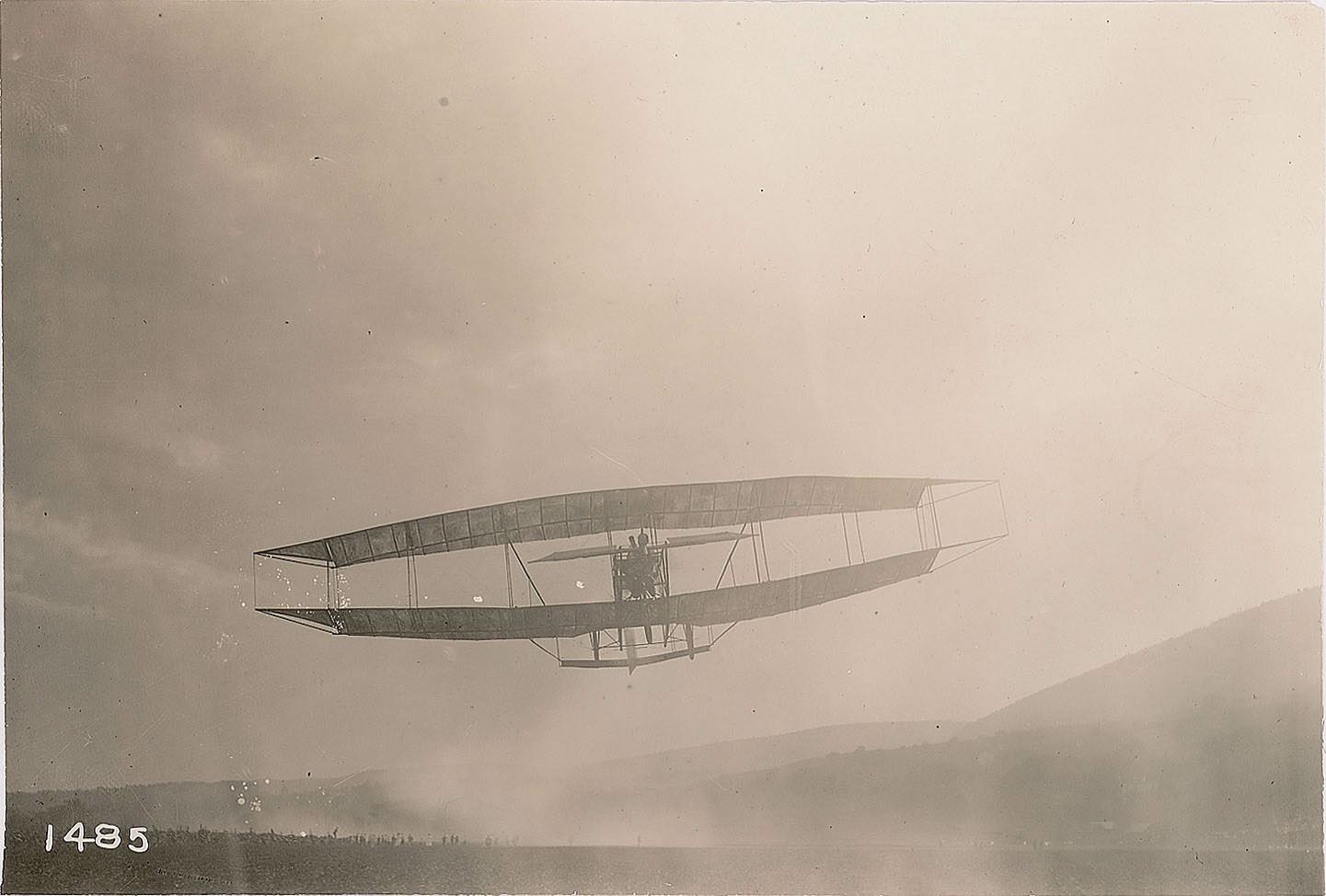 14. Drome No. 3: Curtiss’s June Bug in flight at Hammondsport, July 4, 1908, winning the Scientific American Cup awarded by the Aero Club of America