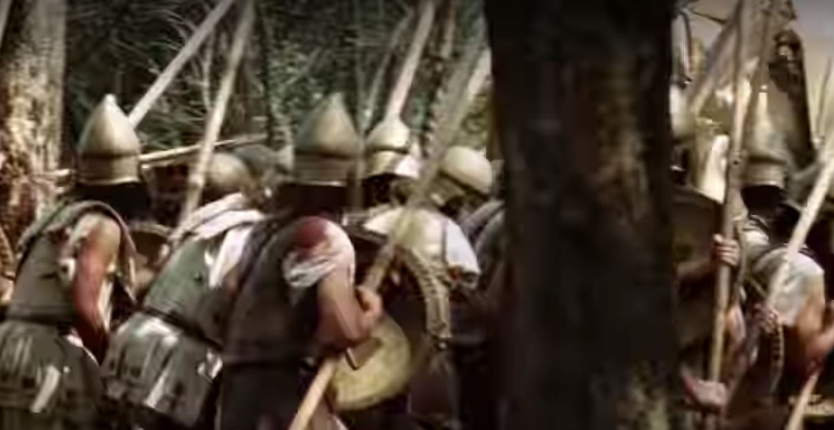 Alexander (2004) - Greek armor helmet made of resin, painted gold.