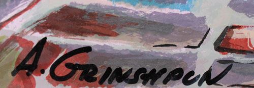 Artist: Alexander Grinshpun - Title: The Cobble Road to the Water - Medium: Serigraph on Wood - Signature: Hand-signed by the Artist - Limited Edition: 395 - Image Size: Approximately 16.5 inches x 13 inches - Unframed - Details: This work comes with a Certificate of Authenticity - Alexander Grinshpun?s style is not made on a single level, but has an unexpected element. It is multi colored art filled with conflicts.