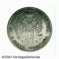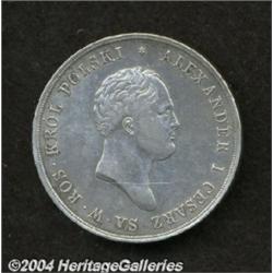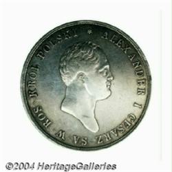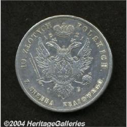Alexander I 10 Zlotych 1821IB, Bust right/Crowned eagle, Dav-248, KM101.1, lightly cleaned VF.From the Dr Irving Arenberg Collection. Important notice: Heritage usually auctions material at the rate of 200-250 lots per hour. On some occasions eBay Live bid software or the Internet may not be able to keep up with the pace of the auction. We recommend placing a realistic absentee bid now as insurance to avoid disappointment. Occasionally the auctioneer may eliminate or reject an eBay Live bid, and the auctioneer may also reopen a lot after the close of the eBay live bidding (usually because we missed an audience bid), and may reject your bid even if it shows you as the winning bidder. By bidding via eBay Live, you agree that Heritage may award the lot to another bidder at its sole discretion under the circumstances described above or any other reasonable circumstances. Also please note that all Heritage lots purchased through eBay Live carry a 20% Buyer's Premium. Please make sure you read the Terms and Conditions before you bid.