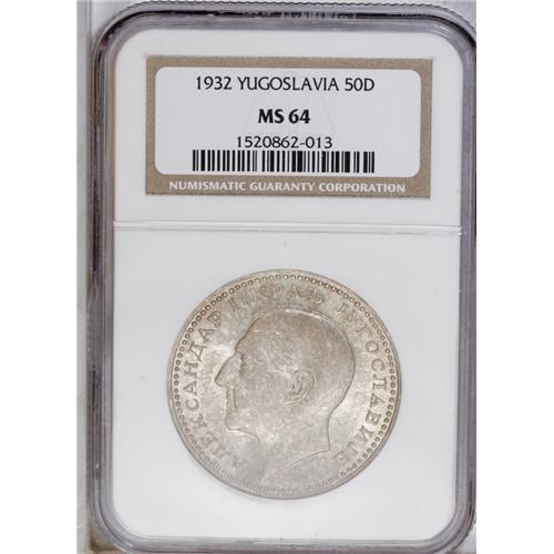<B>Alexander I 50 Dinara 1932, </B></I>KM16, MS64 NGC, medium toning, very attractive and quite scarce in this grade.