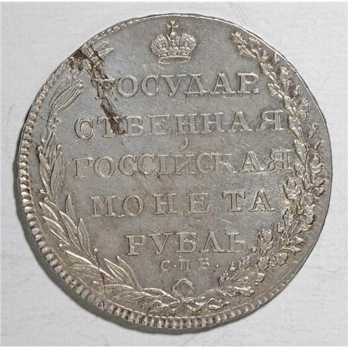 <B>Alexander I. Rouble 1803 C??-??,</B></I> Bit-34, AU, with essentially full luster and a reverse flan flaw between 10 and 11 o'clock.<BR><BR><b>Shipping:</b> Coin/Currency (<a target="_blank" href="http://www.heritageauctions.com/common/shipping.php">view shipping information</a>)