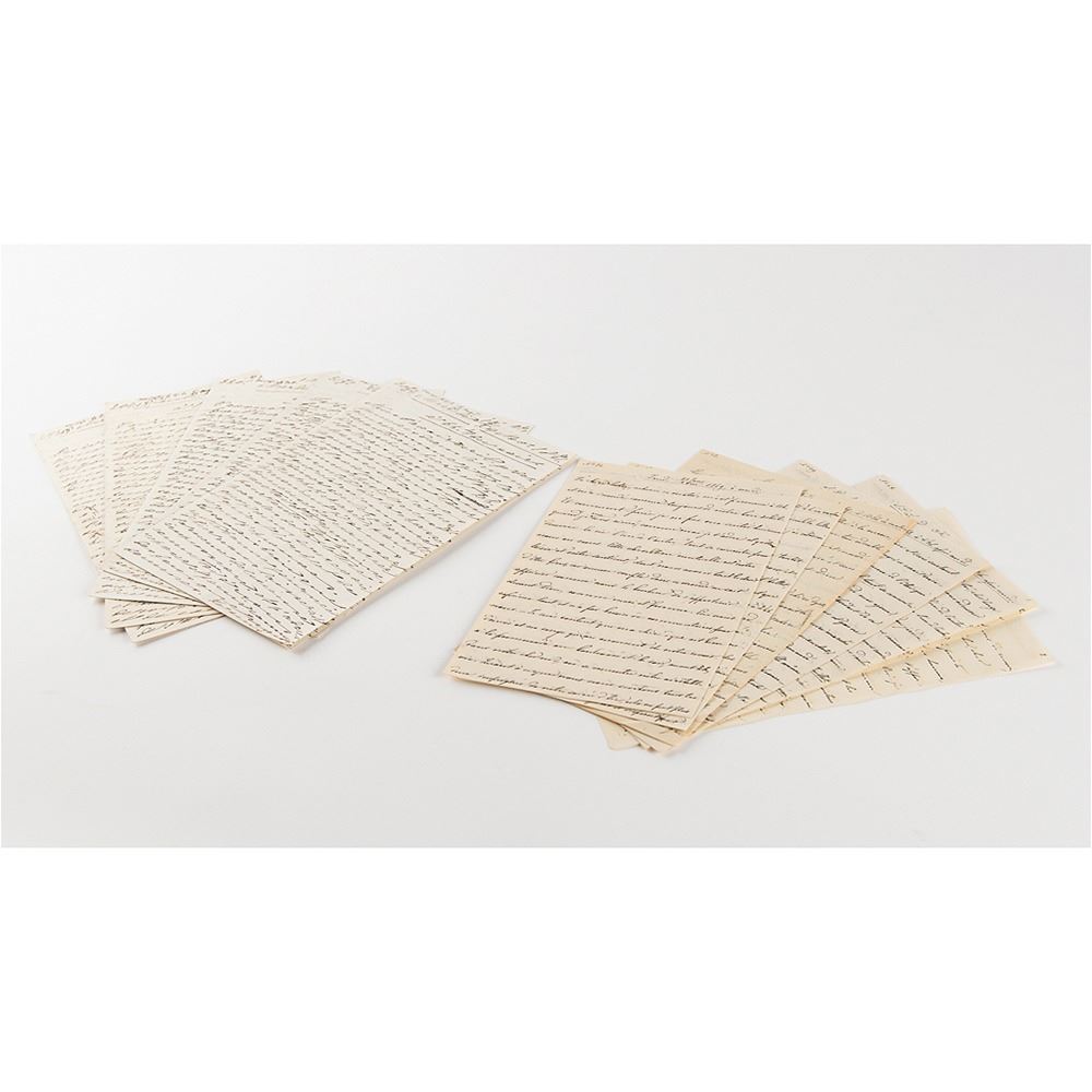 Remarkable archive of love letters between Emperor Alexander II of Russia and his young mistress, Catherine 'Katia' Dolgorukova, totaling ten handwritten letters (five by Alexander and five by Katia) amounting to over forty pages, circa 1868-1871. Their torrid affair produced a massive, steamy correspondence—they often wrote back and forth multiple times a day, sometimes with commentary on their erotic exploits. They took some lengths to conceal the relationship, never signing their letters and using the code-word 'bingerle' to refer to the act of copulation.