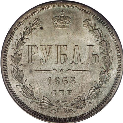 <B>Alexander II. Rouble 1868 C??-HI,</B></I> Bit-81, MS64 PCGS. Well struck with gray-russet toning and full underlying luster. <BR><I>From the Louis E. Eliasberg, Sr. Collection.</B></I><BR><BR><b>Shipping:</b> Coin/Currency (<a target="_blank" href="http://www.heritageauctions.com/common/shipping.php">view shipping information</a>)