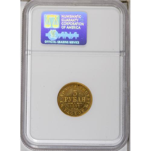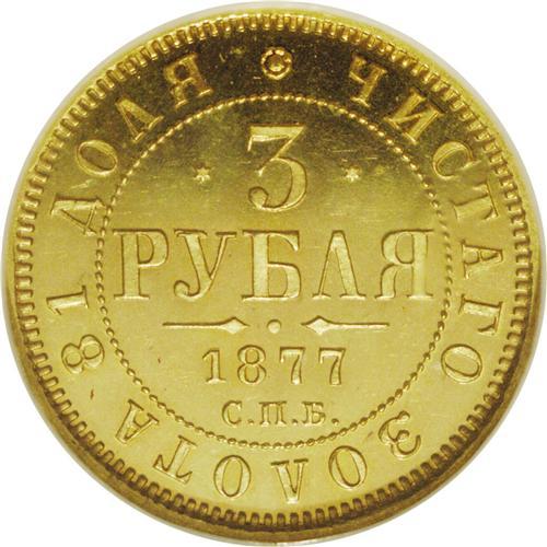 Alexander II gold 3 Roubles 1877 C??-H?, F-164, Bit-40,