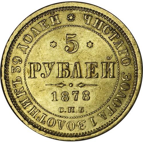 Alexander II gold 5 Roubles 1878 C??-H?, F-163, Bit-27,