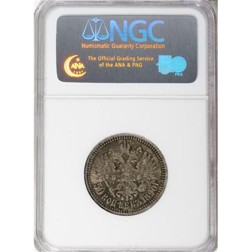 Alexander III 50 Kopecks 1890 A?, Bit-83, R.1, MS62 NGC