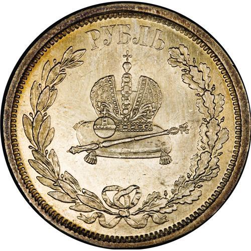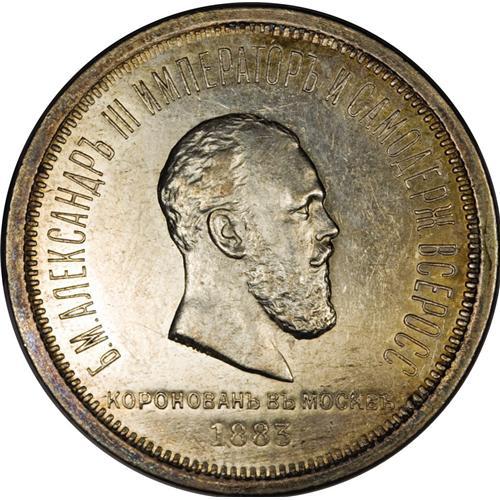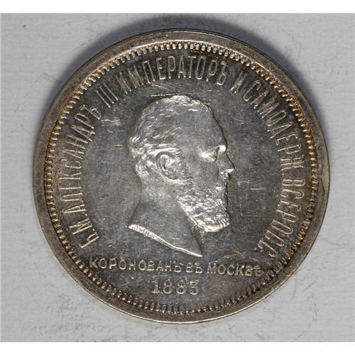 <B>Alexander III. Coronation Rouble 1883,</B></I> Bit-217, Choice AU with a prooflike obverse.<BR><I>From the Monedas Oro Collection</B></I><BR><BR><b>Shipping:</b> Coin/Currency (<a target="_blank" href="http://www.heritageauctions.com/common/shipping.php">view shipping information</a>)